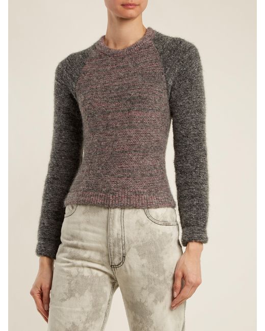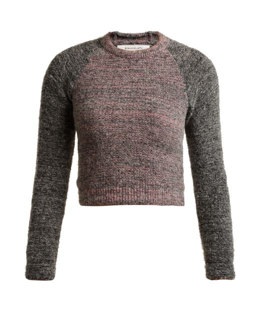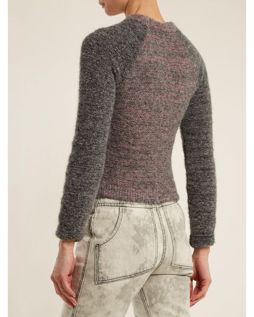 Pull raccourci en alpaga mélangé à manches raglan femme de coloris gris