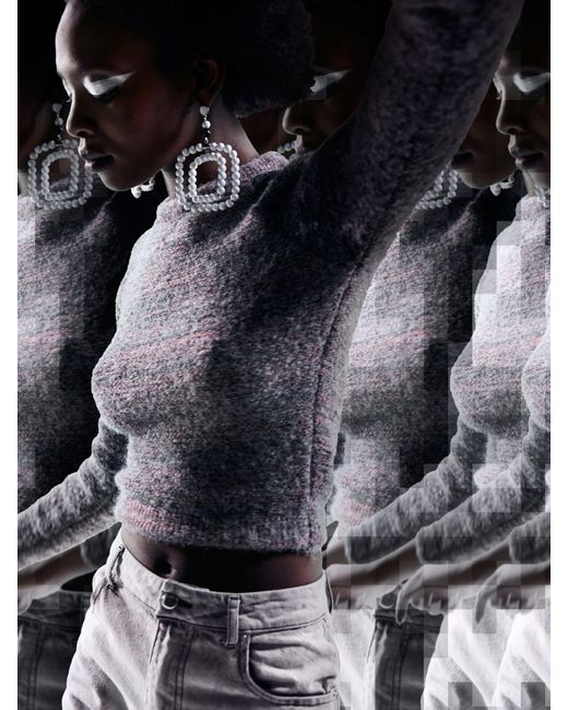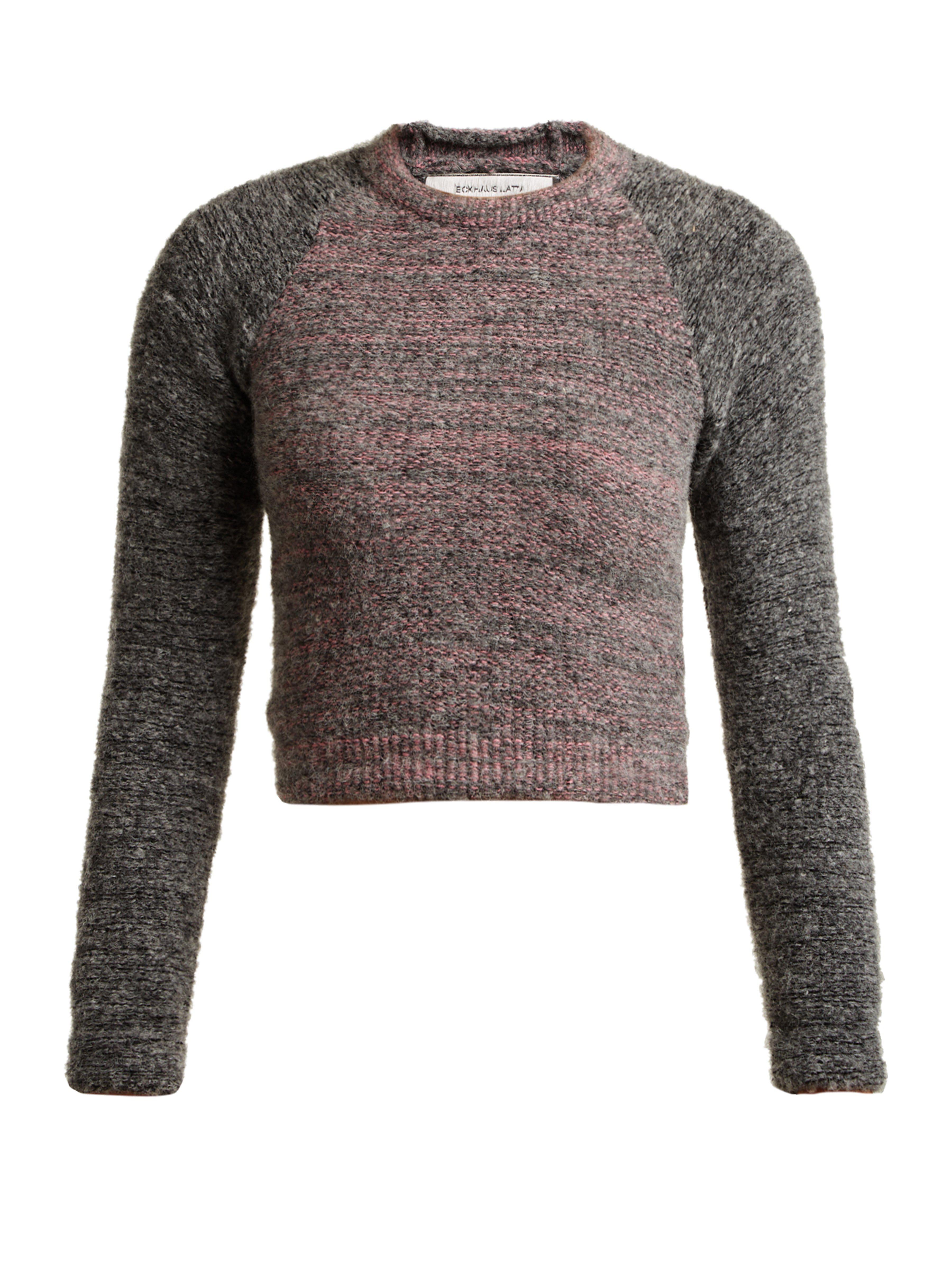 En exclusivité sur MATCHESFASHION.COM, la collection capsule de huit pièces signée Eckhaus Latta est confectionnée à partir d'invendus de matériaux recyclés, un mouvement durable en phase avec l'approche expérimentale de la marque new-yorkaise. Issu de la collection, ce pull raccourci conçu en maille d'alpaga mélangé moucheté gris et rose présente une encolure ronde montante et des manches raglan grises contrastantes. Portez-le avec un denim taille haute et des bottines pour un effet avant-garde. Coloris : gris