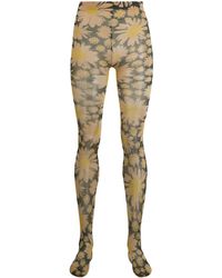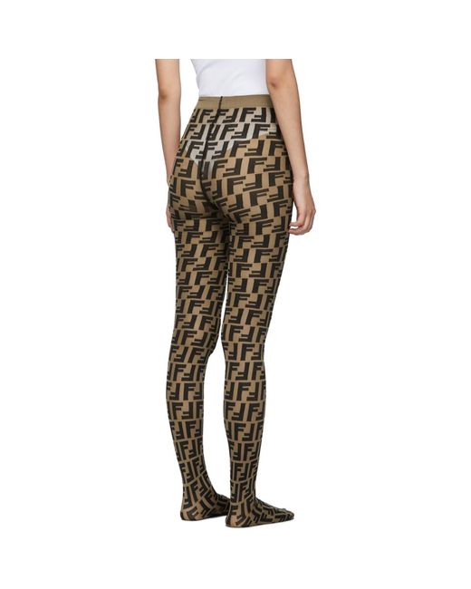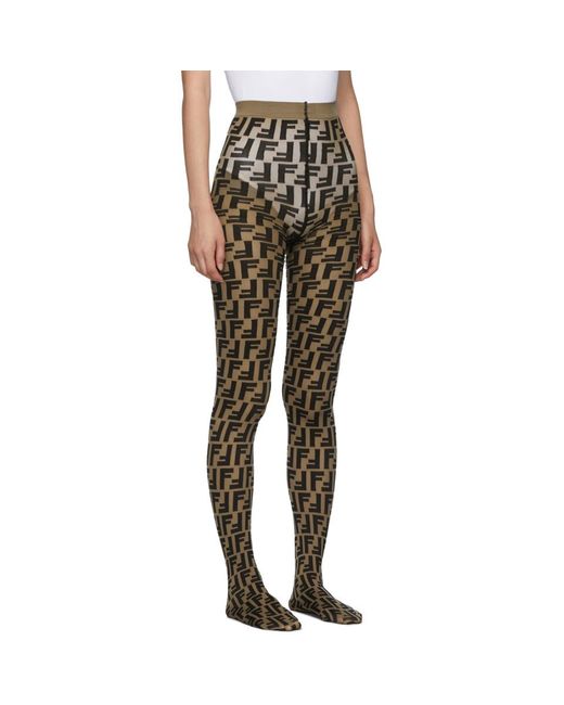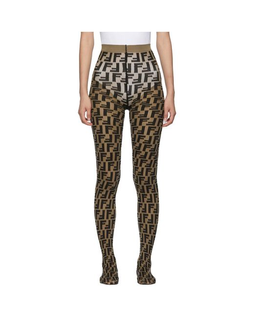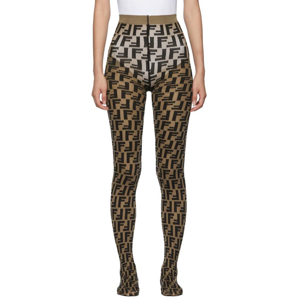 Collant en nylon extensible semi-transparent brun a motif a logo noir sur lensemble. Taille en maille cotelee. Couleur du fournisseur: Brown. Coloris : marron