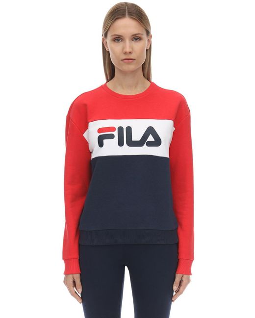 Sweat-Shirt En Coton Mélangé femme de coloris rouge