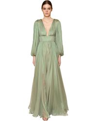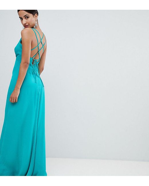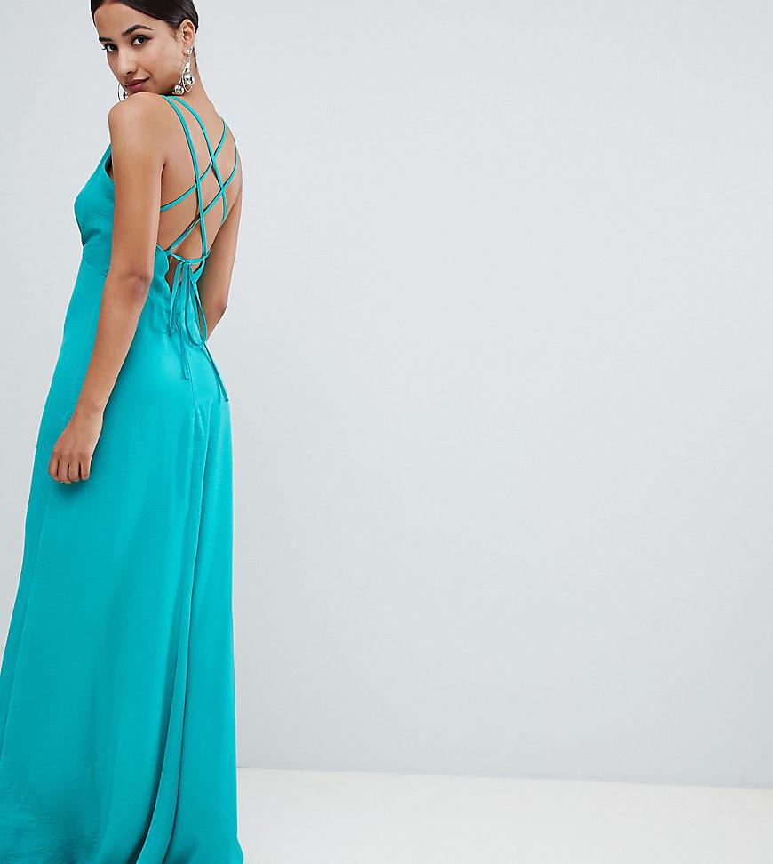 Robe longue avec décolleté sur le devant et dos à bretelles femme de coloris vert