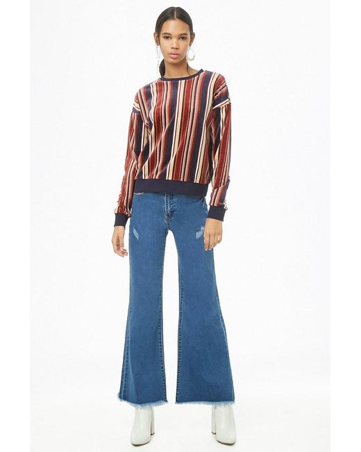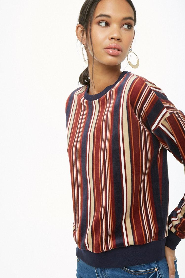 Sweatshirt rayé femme de coloris rouge