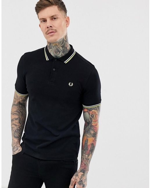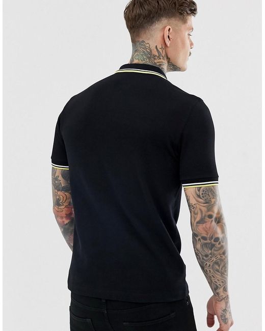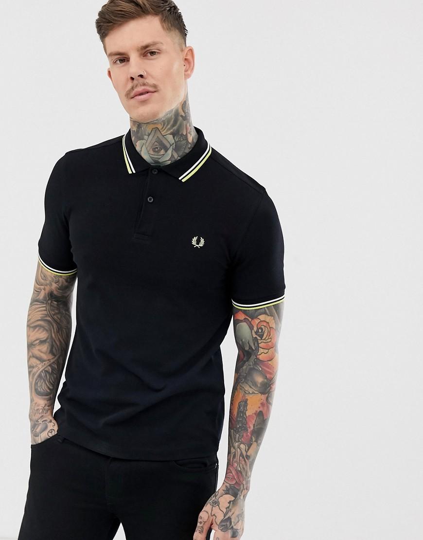 Polo par Fred Perry, L'élégance casual personnifiée, Col polo, Rayures contrastées, Patte de boutonnage, Manches courtes, Coupe classique, Sans surprise, simplement une coupe classique. La collection authentique de vêtements homme Fred Perry est très influencée par l'historique de la marque en matière de vêtements de sport et de vêtements urbains classiques. La sélection, comprenant le polo cintré emblématique de la griffe, mélange le style British avec une attitude un peu plus rebelle inspirée du look streetwear unique de la marque. Coton/ or. Coloris : noir