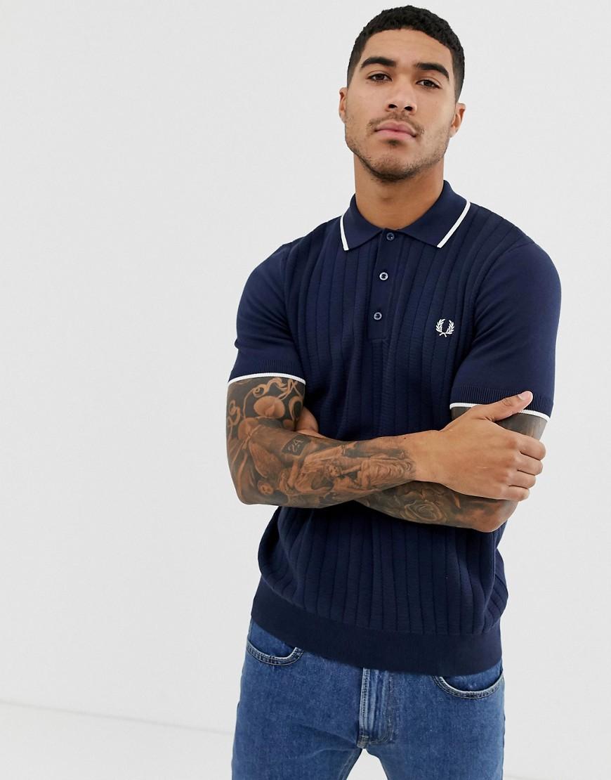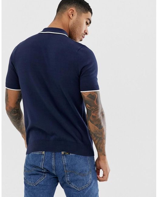 Polo en maille à bordures contrastantes - Bleu marine homme