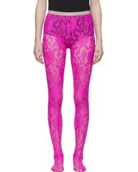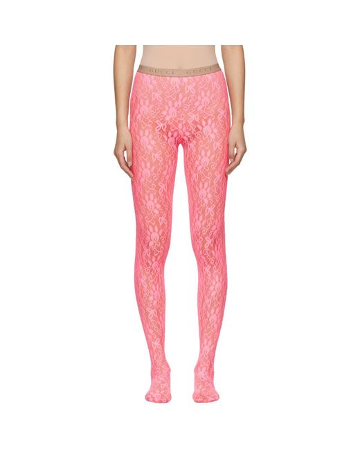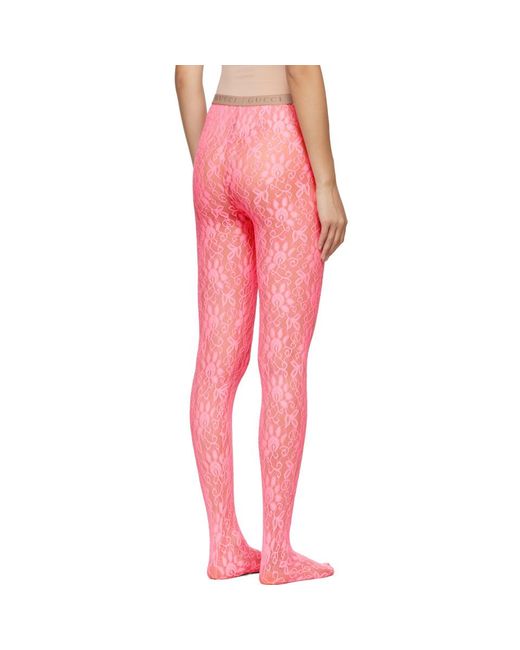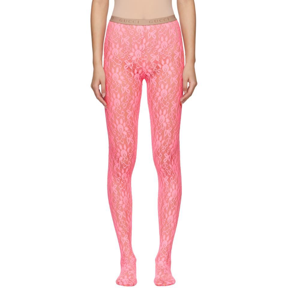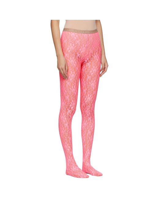 Collant en dentelle fleurie extensible rose light. Taille elastique avec logo en maille beige. Coutures ton sur ton. Coloris : rose