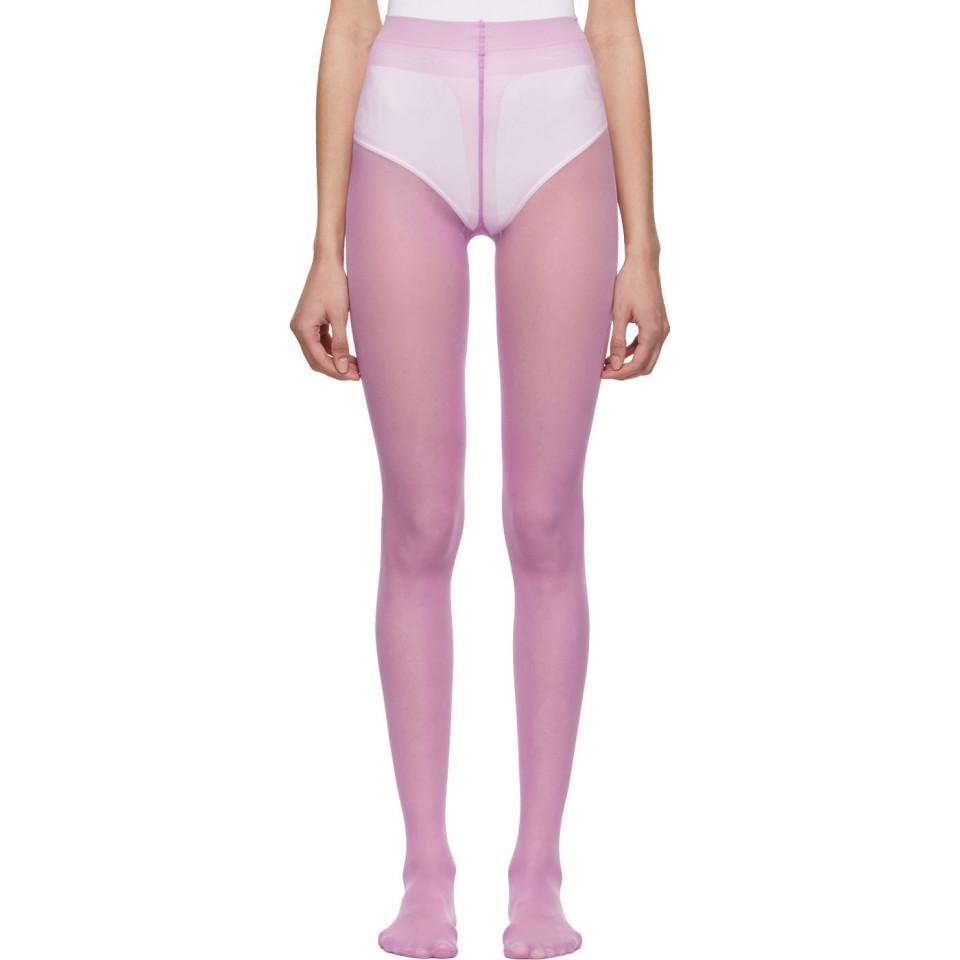 Collant extensible en nylon mauve. Motif a logo ton sur ton a la taille elastique. Coloris : violet
