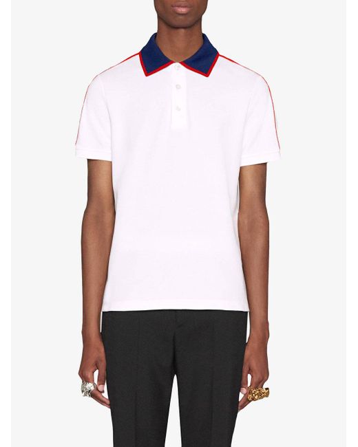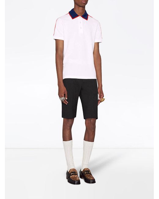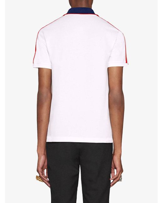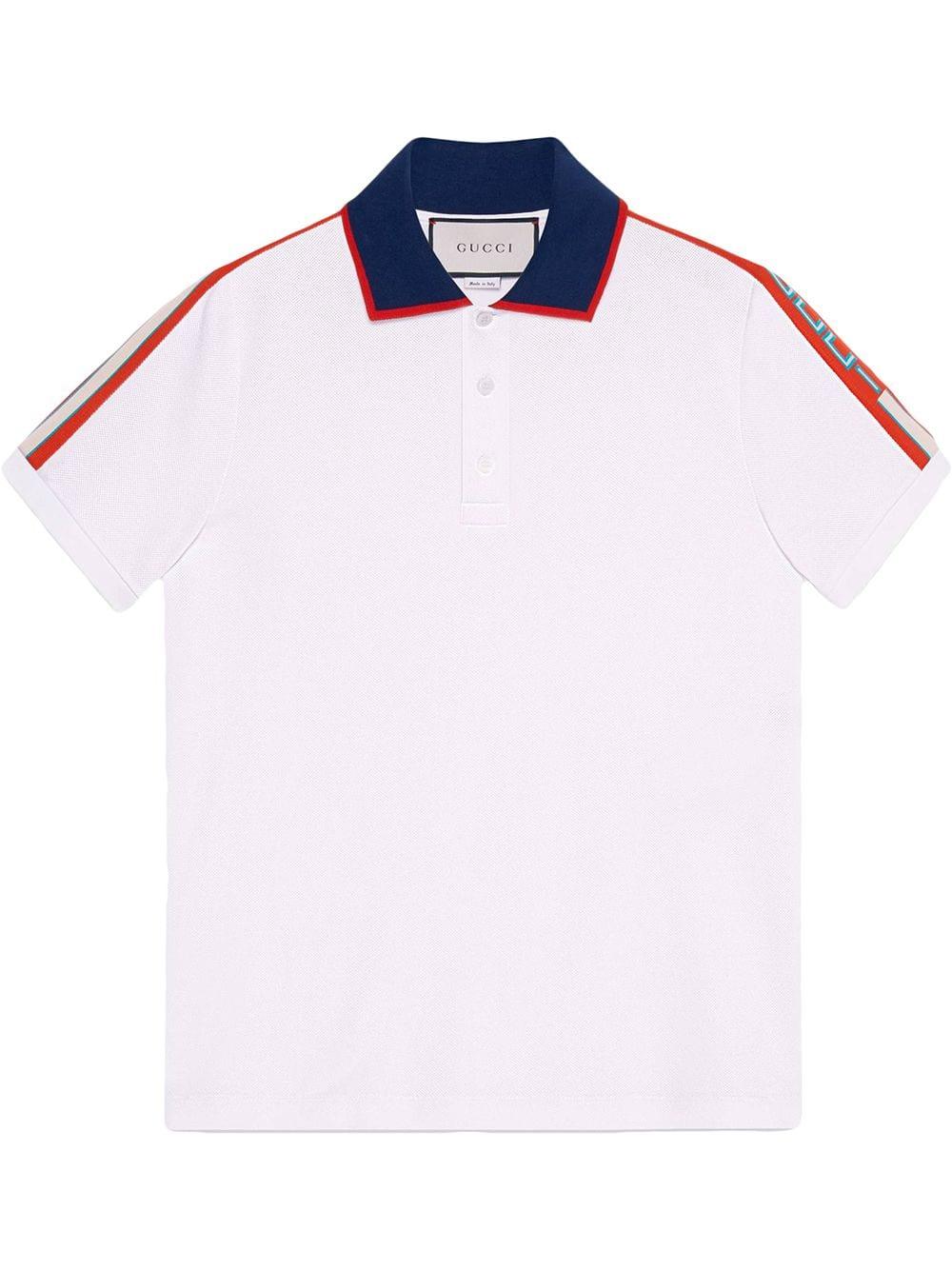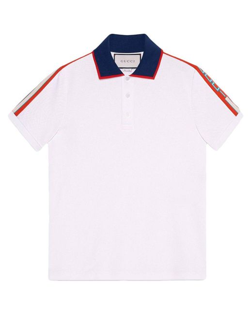 Polo en coton stretch multicolore à bandes logo Gucci. Coloris : blanc