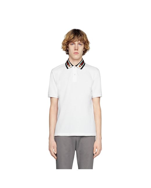 Polo à bande Web et tête de félin Gucci. Couleur : blanc. Coloris : blanc