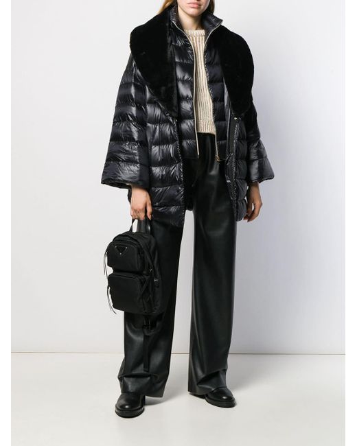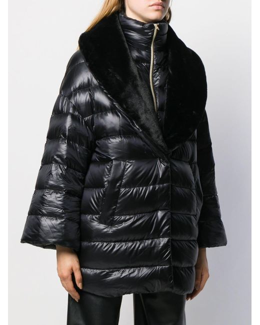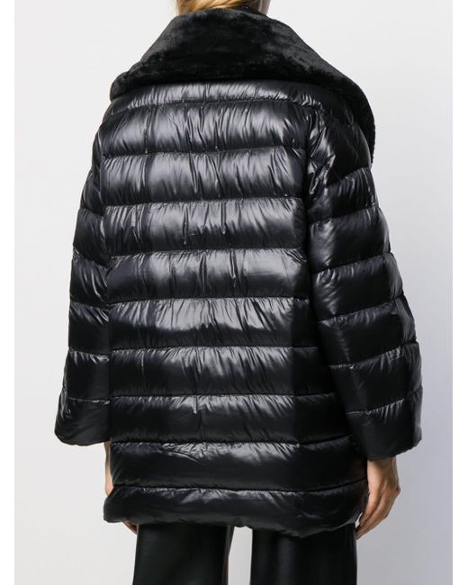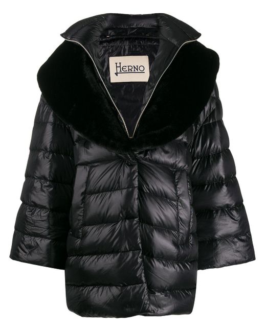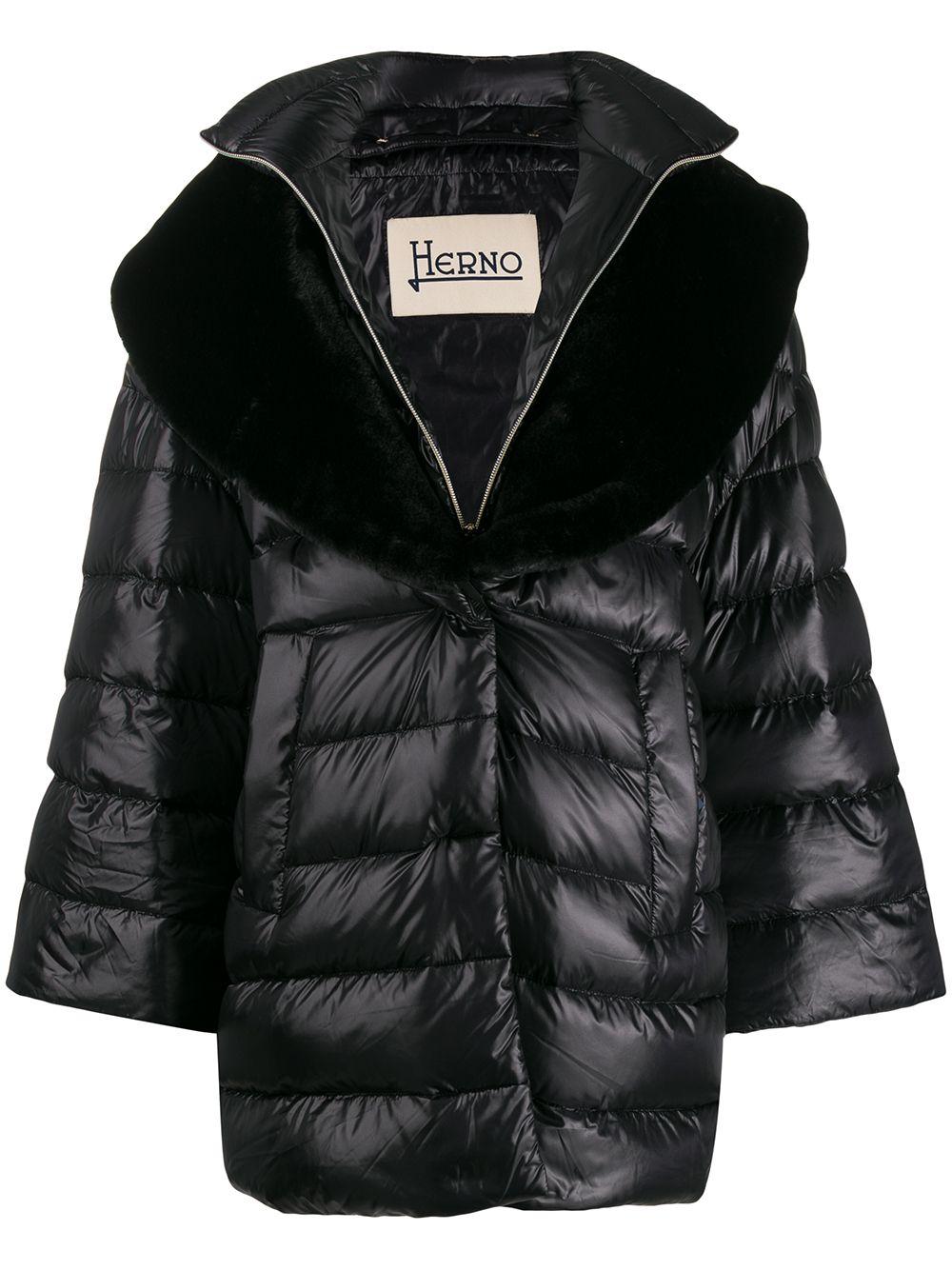 Doudoune zippé à col montant Herno avec col officier, fermeture zippée devant, manches longues, détails en fourrure artificielle, poches latérales et coupe courte. Couleur : noir. Coloris : noir