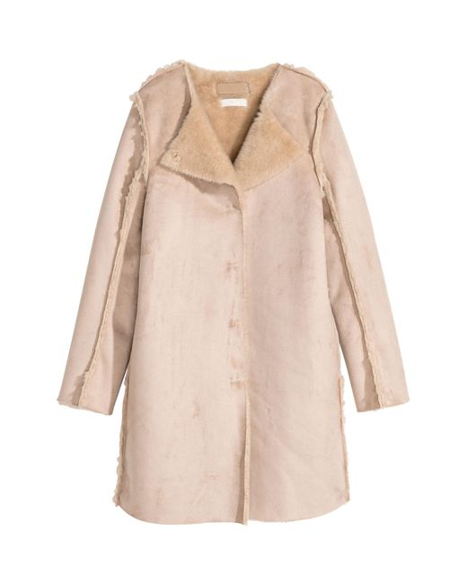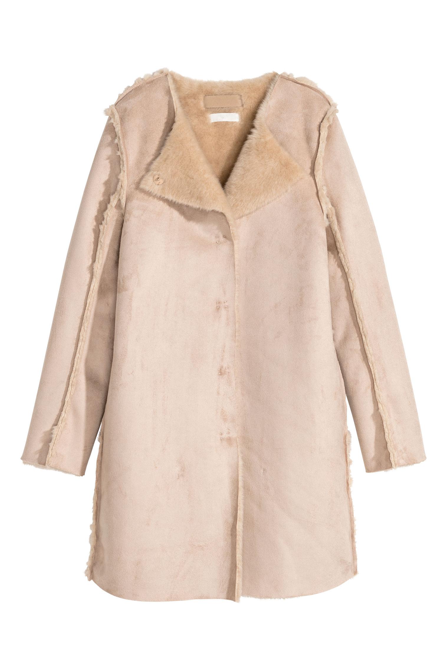 Manteau en suédine avec bords à cru et fermeture par boutons-pression dissimulés devant. Poches couture. Doublé. Coloris : neutre