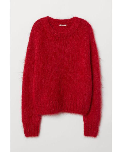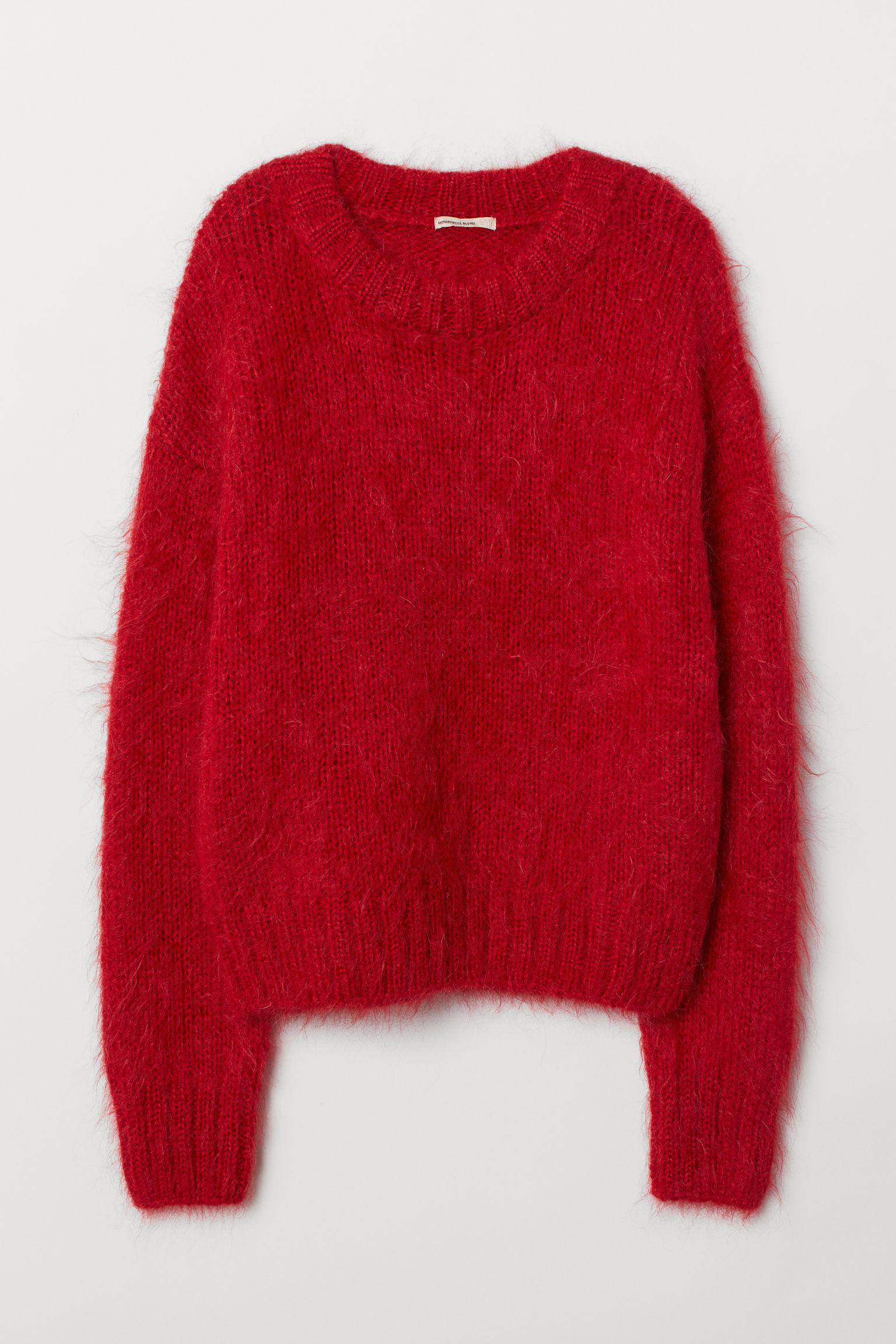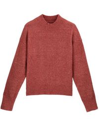 QUALITÉ PREMIUM. Pull en maille douce de laine mélangée à la surface brossée. Modèle avec large finition en maille côtelée à l'encolure, à la base et en bas de manche. Coloris : rouge
