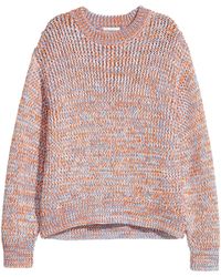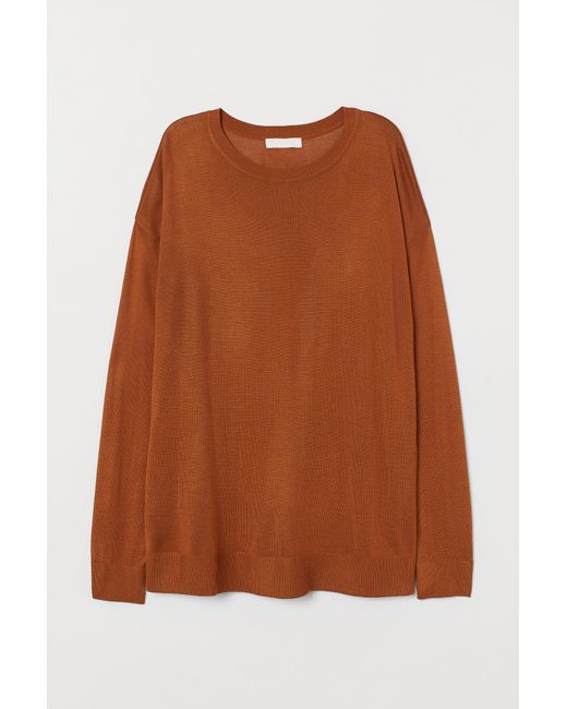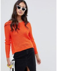 Pull en maille fine et douce de viscose mélangée. Modèle avec encolure ronde, emmanchure descendue et manches longues. Finition côtelée à l'encolure, à la base et en bas de manche. Fentes latérales à la base. Coloris : orange