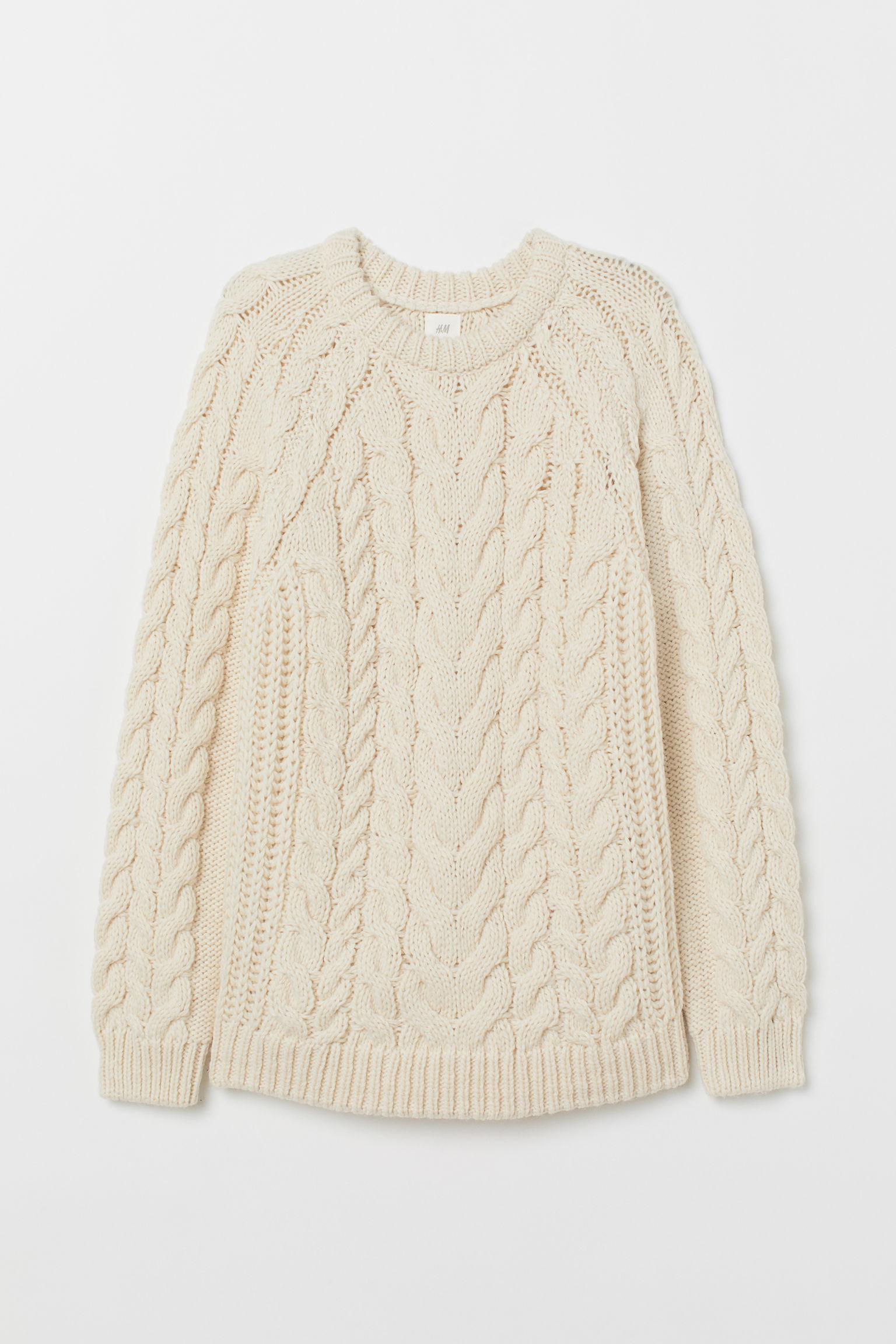 Pull en douce maille torsadée. Modèle avec finition côtelée à l'encolure, à la base et en bas des longues manches raglan. Coloris : blanc