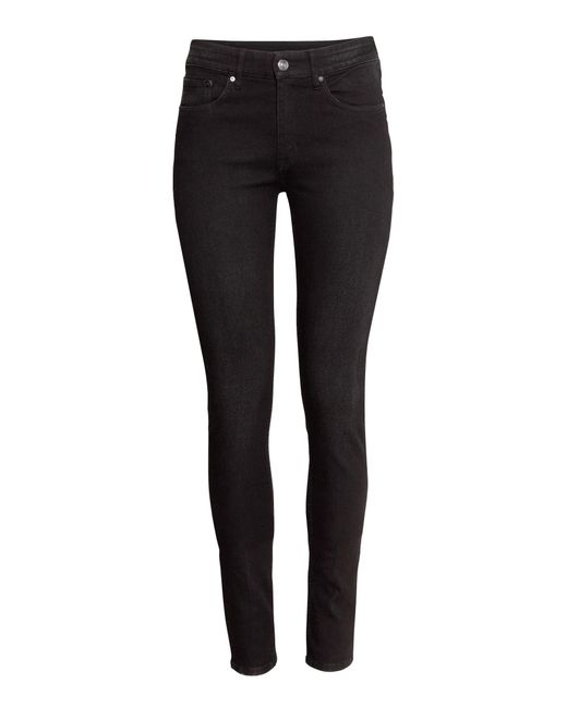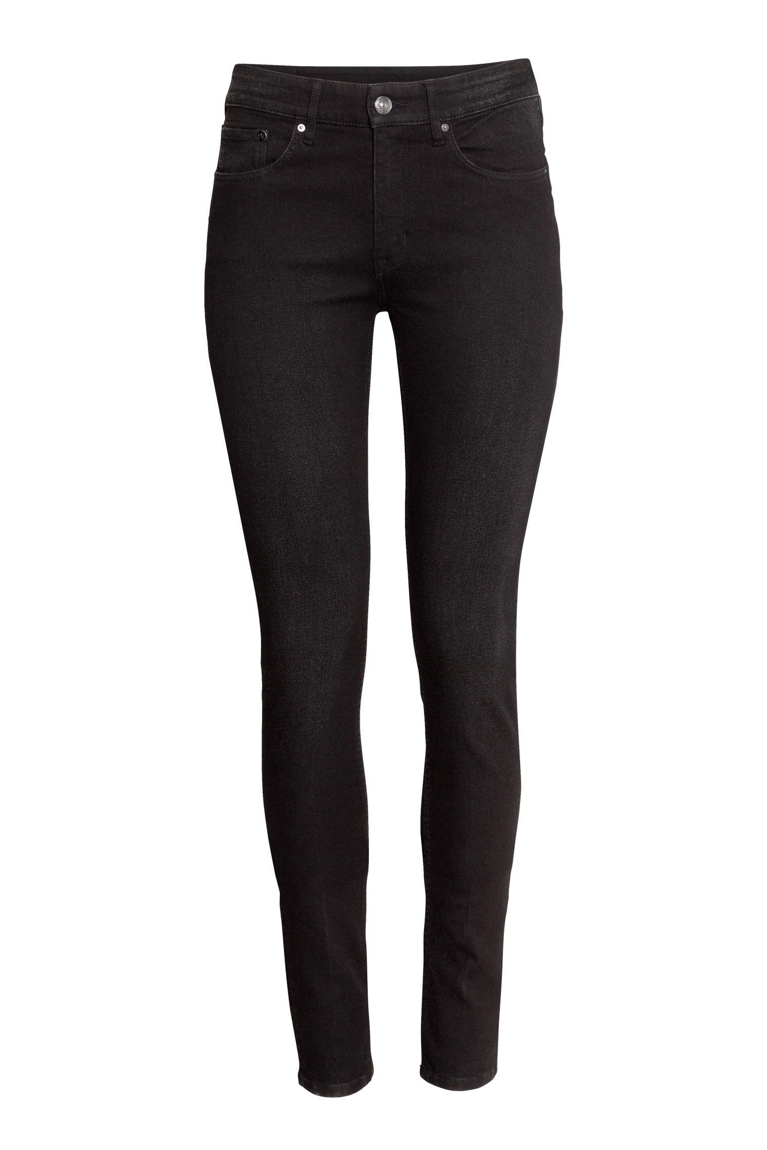 Jean 5 poches en denim extensible lavé. Modèle avec jambes très fines et taille de hauteur classique. Coloris : noir