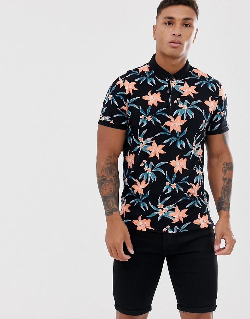 Polo en piqué à fleurs avec col moderne - Noir homme