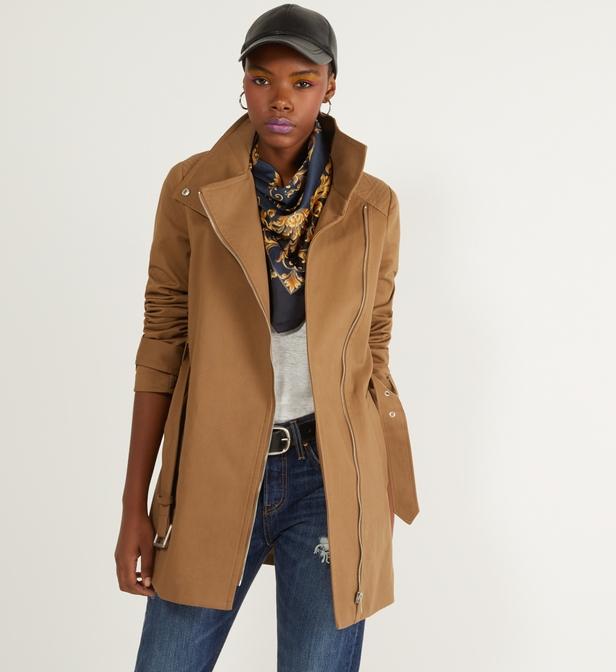 Trench femme mi long cintré coton de coloris neutre