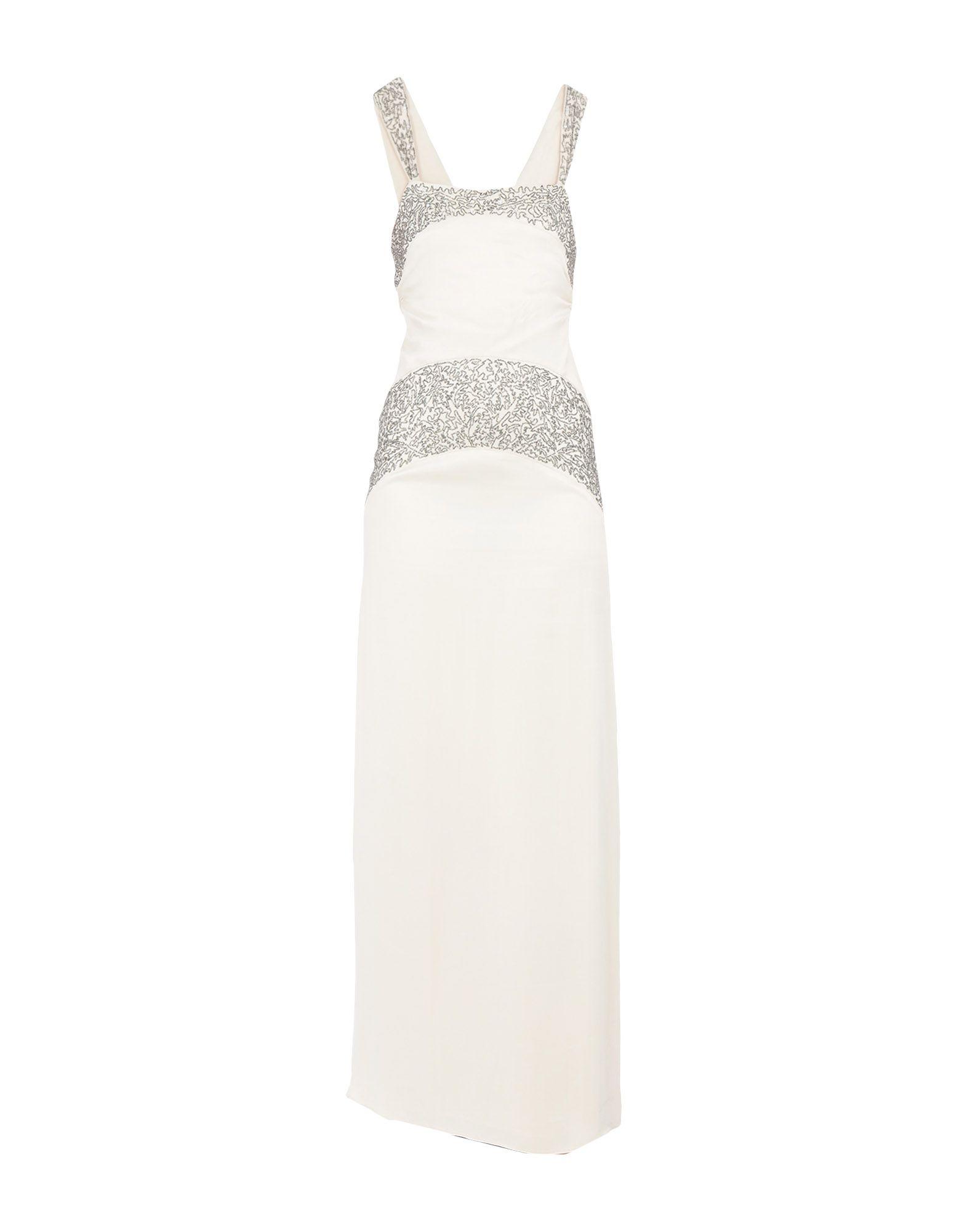 Satin, perles, uni, décolleté profond, sans manches, sans poche, fermeture sur l'avant, fermeture avec fermeture éclair et agrafes, intérieur entièrement doublé, robe. 100% Viscose. Coloris : blanc