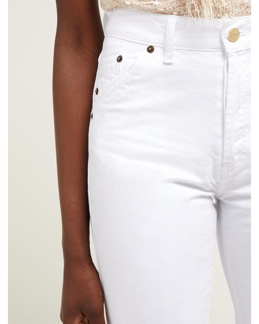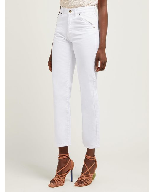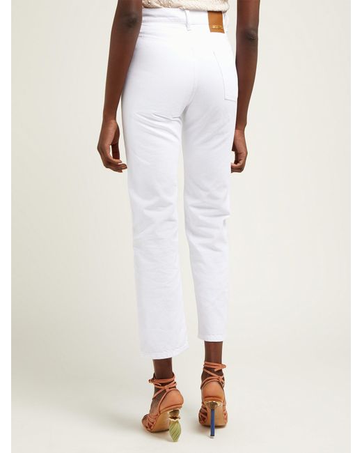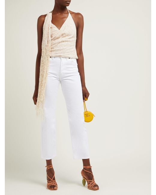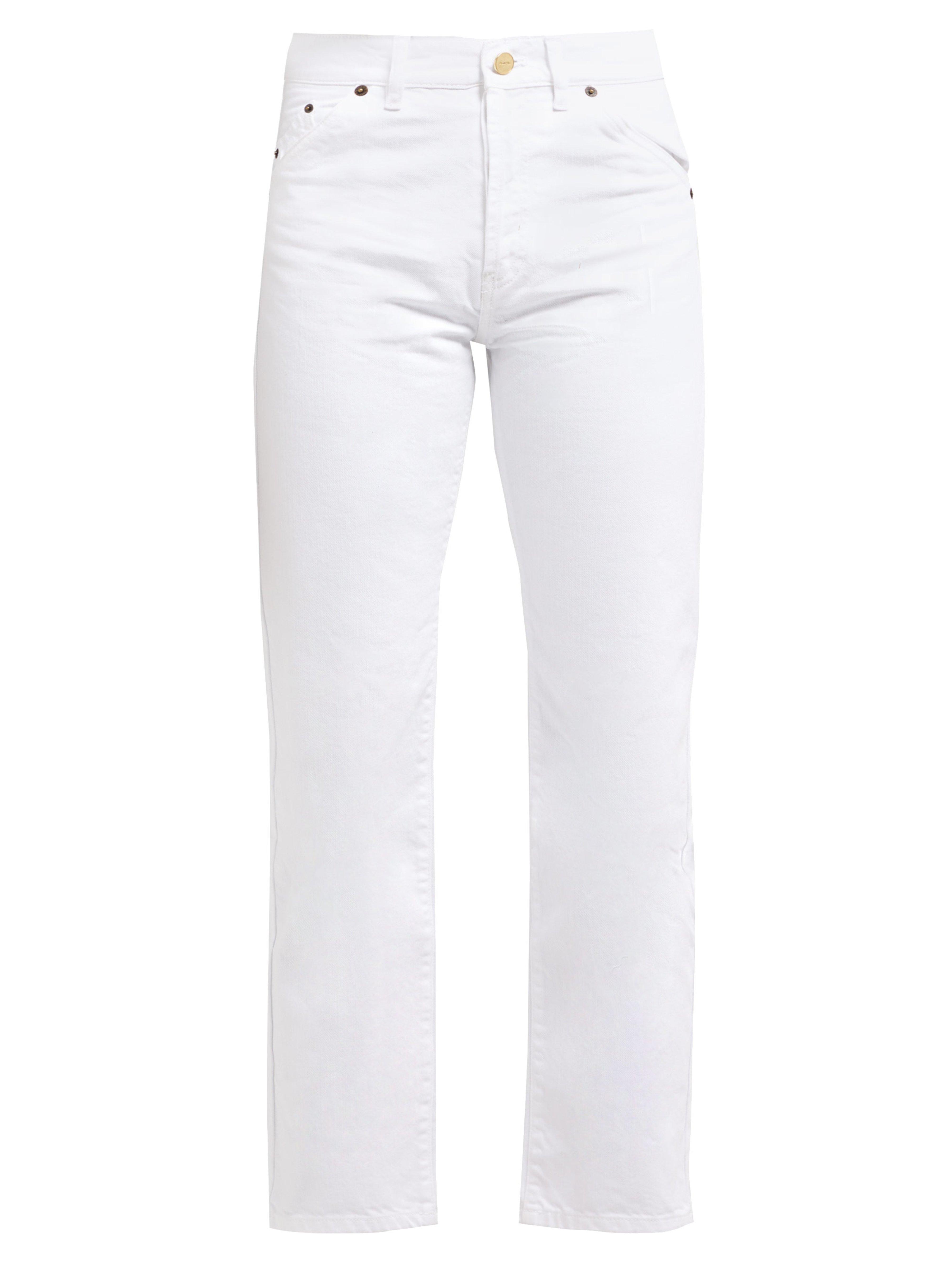 Ce modèle classique blanc Le Jean signé Jacquemus illustre le talent du créateur pour la confection de pièces contemporaines élégantes et faciles à porter. Réalisé en denim non stretch d'épaisseur moyenne, il adopte une taille haute agrémentée d'un bouton orné du logo gravé et tombe sur une coupe slim légèrement raccourcie. Accompagnez-le d'un sac jaune vif pour un pic-nique au soleil. Coloris : blanc