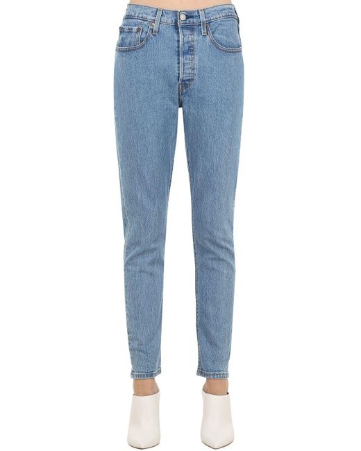 Jean Taille Haute "501" Coupe Slim femme de coloris bleu