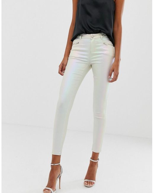 Jean skinny enduit - Crème nacré femme de coloris rose