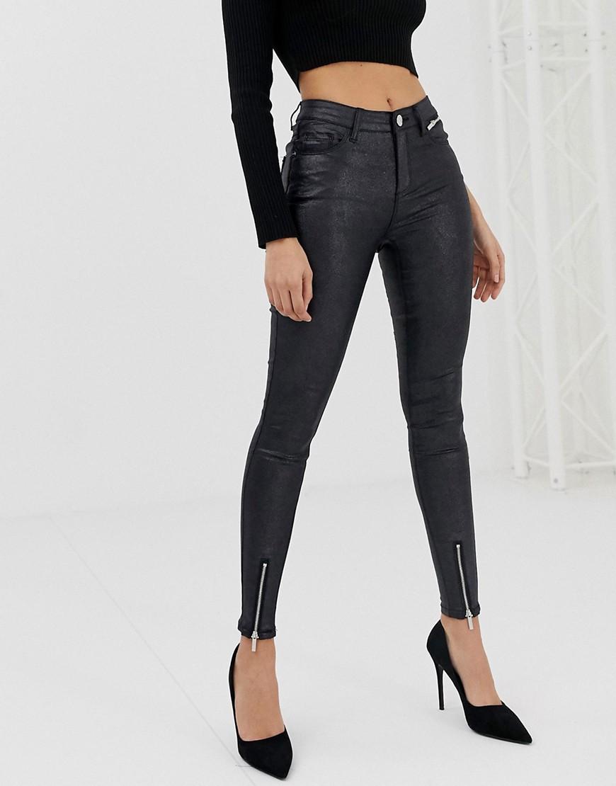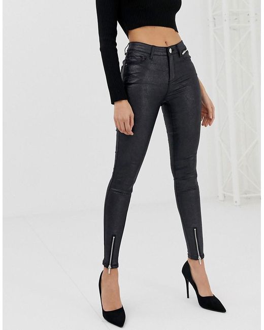 Jean skinny enduit avec fentes aux chevilles femme de coloris noir
