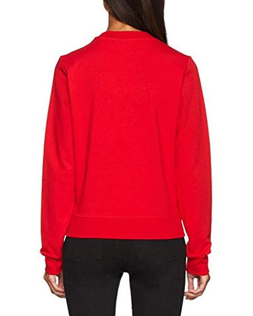 Round Collar Sweatshirt with Logo Sweat-Shirt Femme de coloris rouge