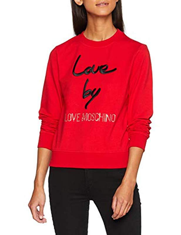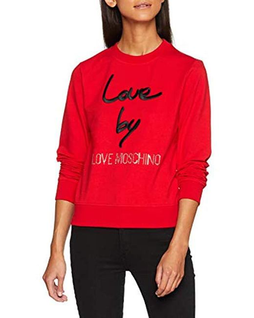 Love Moschino Round Collar Sweatshirt with Logo Sweat-Shirt Femme. Coloris : rouge