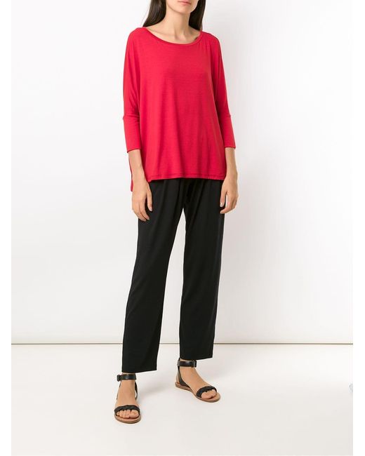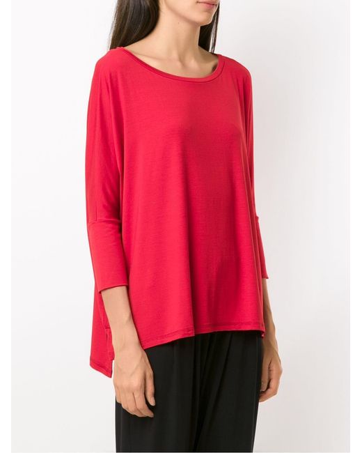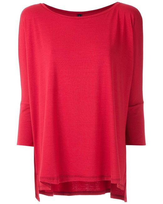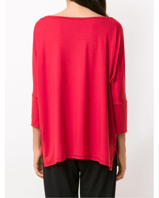 Sweat Maína Radiosa Lygia & Nanny avec col bateau, manches trois quarts, ourlet plus long au dos, fentes latérales et coupe ample. Coloris : rouge