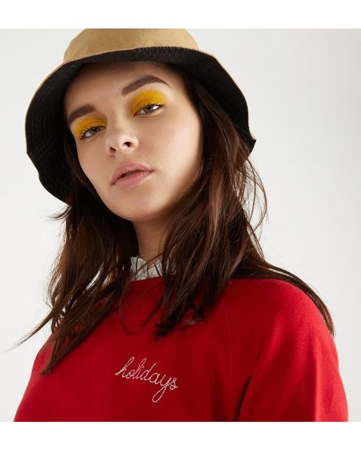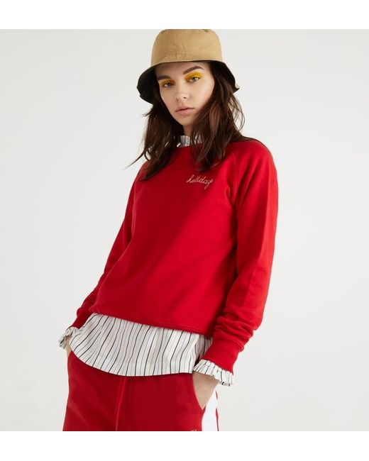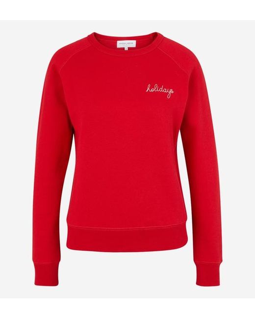 Ce sweat droit Maison Labiche en coton rouge est doublé de molleton. Il est muni d'un col rond, de manches longues, d'une broderie contrastante holidays sur le côté gauche de la poitrine et de finitions côtelées. Coloris : rouge