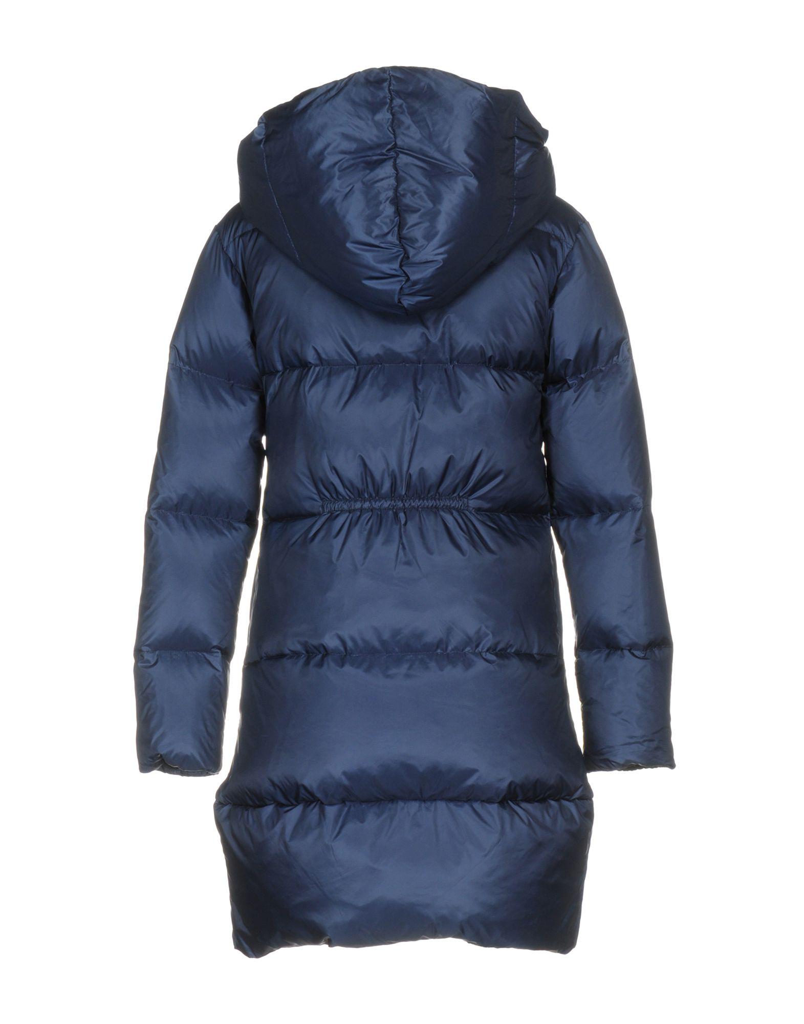 Tissu technique, sans applications, uni, col rond, veste droite, fermeture avec zip et boutons-pressions, multipoches, manches longues, intérieur en plumes d'oie, contient des parties non textiles d'origine animale, vestes et manteau. 100% Polyamide. Coloris : bleu