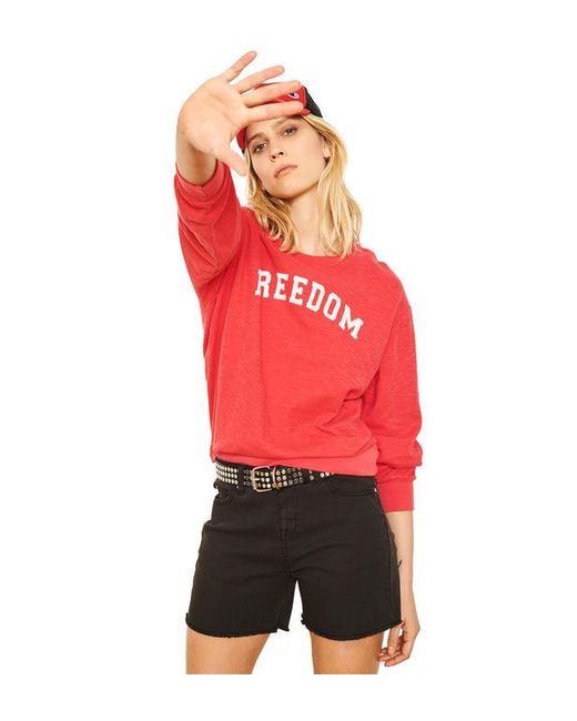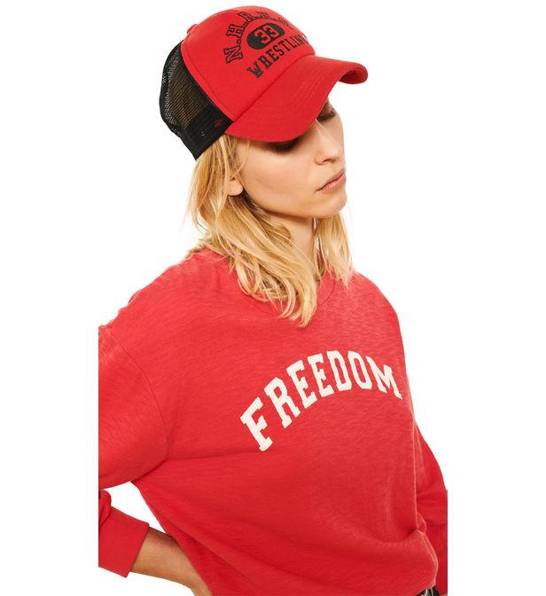 Le Sweat avec son motif sérigraphie FREEDOM le mot qui inspire tous les artistes ici réalisé dans une version et esprit vintage avec un molleton très doux. Il existe dans une large gamme de coloris. Encolure arrondie légèrement dégagée, bord côte en ton sur ton en bas du pull et des manches. Manches longues. Composition100% Coton. Coloris : rouge