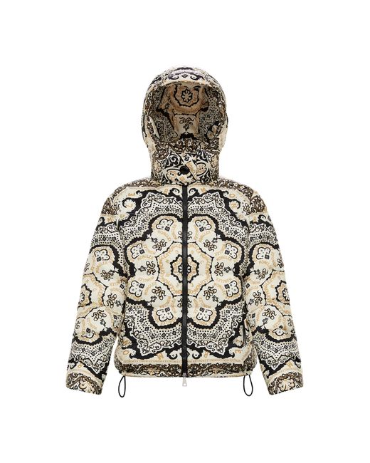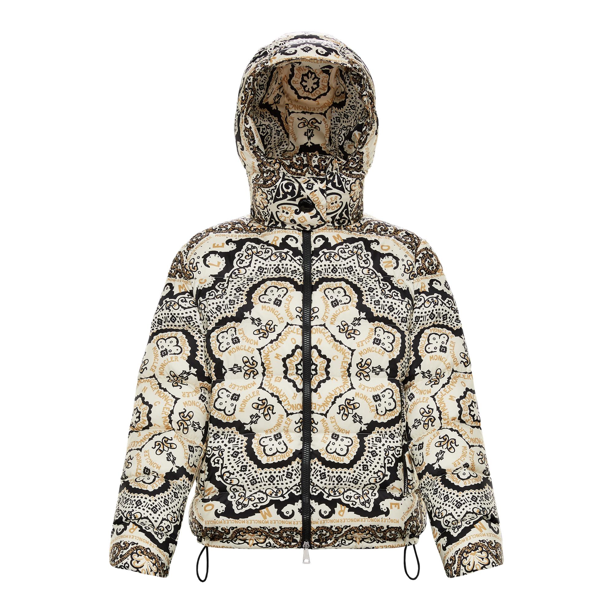 Le nylon léger de la maison Moncler sort actualisé de l'inédite rencontre avec l'imprimé « Bandana » : voici donc le blouson pour femme Turquin. Logo. Col à capuche. Manches longues. Multipoches. Zip. Intérieur en plumes d'oie. 100% Polyamide. Coloris : noir