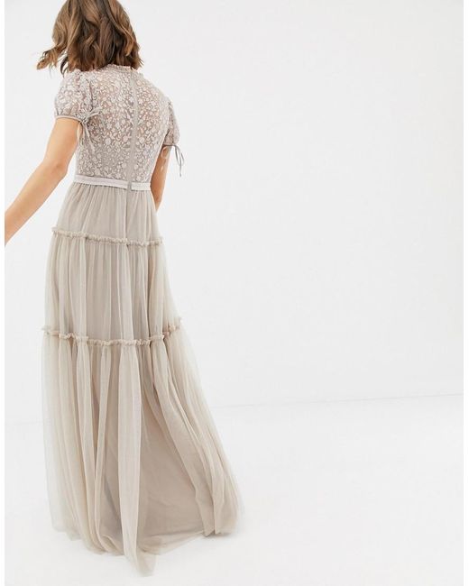 Maxi robe par Needle & Thread, Il est joli n'est-ce pas? Paisseur moyenne, Doublure caraco douce, Bretelles ajustables, Décolleté plongeant, Top brodé, Mancherons avec liens à nouer, Empiècements volantés, Fermeture éclair au dos, Coupe classique, Pas trop ample, pas trop serré. La marque britannique Needle & Thread, créée en 2013, est rapidement devenue une marque incontournable pour les tenues habillées aux magnifiques ornements. Avec ses créations en dentelle travaillée d'inspiration vintage et de tulle délicat, ses robes, jupes et tops sont parfaits quand vous avez besoin de quelque chose d'un peu plus sophistiqué. Et en plus, ils ont les plus jolies couleurs - un rêve. Nylon/ or/ polyester. Coloris : rose