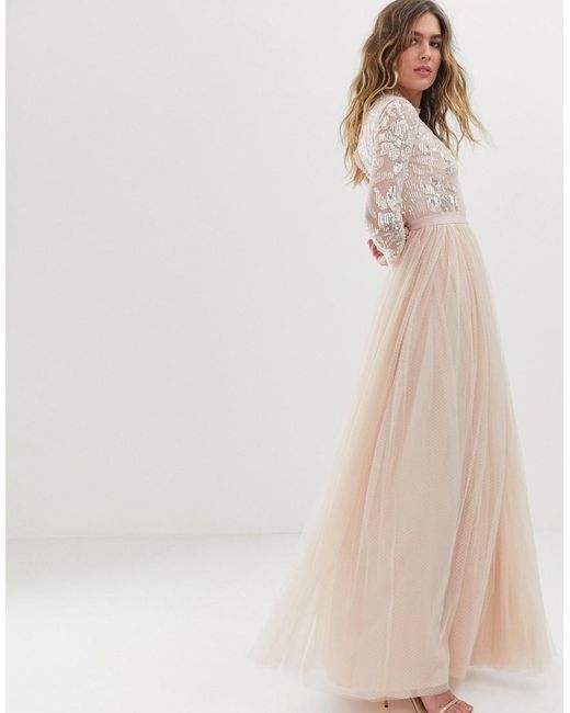 Maxi robe par Needle & Thread, Pour cette soirée où vous devez vous rendre, Doublure intégrale, Col montant, Top orné de sequins, Motif brodé, Goutte d'eau boutonnée au dos, Fermeture éclair, Coupe classique, Sans surprise, simplement une coupe classique. La marque britannique Needle & Thread, créée en 2013, est rapidement devenue une marque incontournable pour les tenues habillées aux magnifiques ornements. Avec ses créations en dentelle travaillée d'inspiration vintage et de tulle délicat, ses robes, jupes et tops sont parfaits quand vous avez besoin de quelque chose d'un peu plus sophistiqué. Et en plus, ils ont les plus jolies couleurs - un rêve. Or/ polyester. Coloris : rose