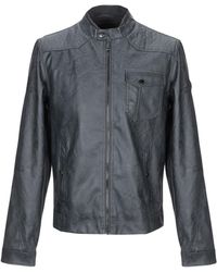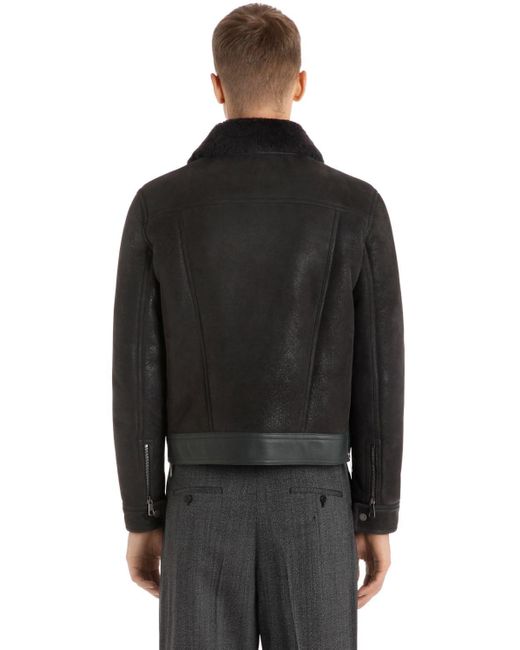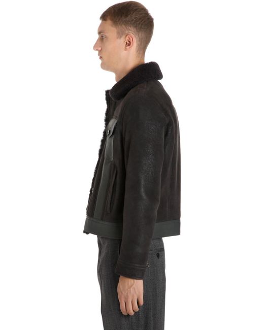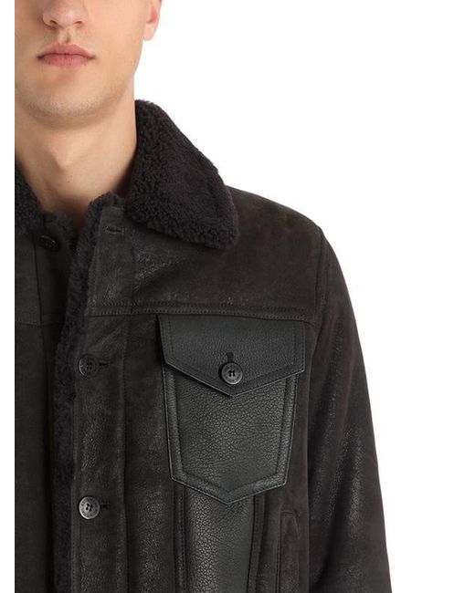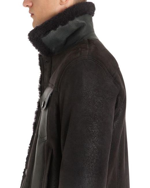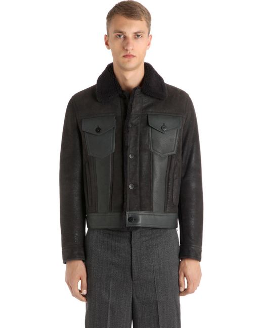 Veste En Cuir Et Daim Avec Shearling homme de coloris gris