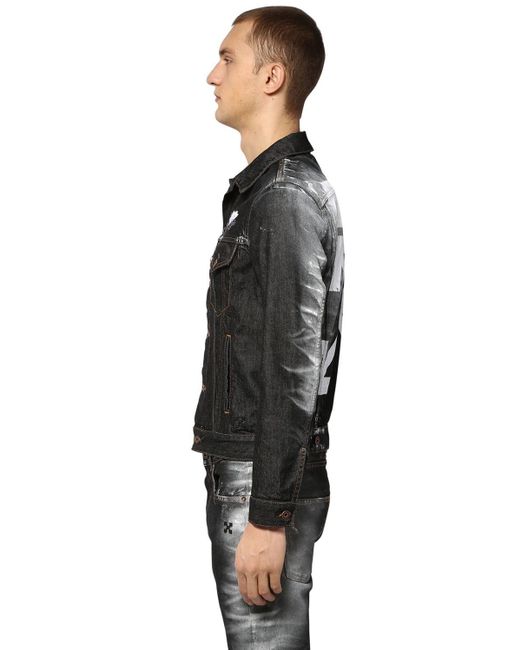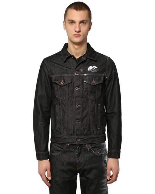 Veste Slim En Denim De Coton Imprimé homme de coloris noir