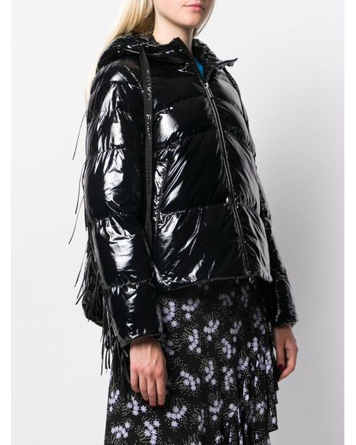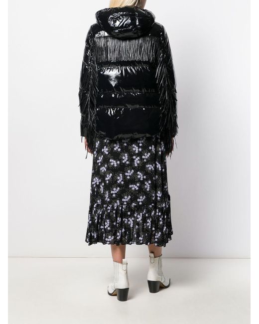 Doudoune à franges Pinko avec fermeture zippée devant, manches longues et détails de franges. Couleur : noir. Coloris : noir