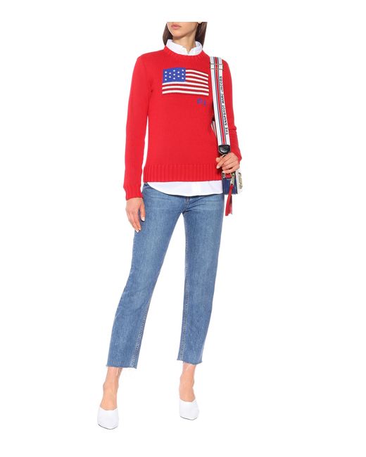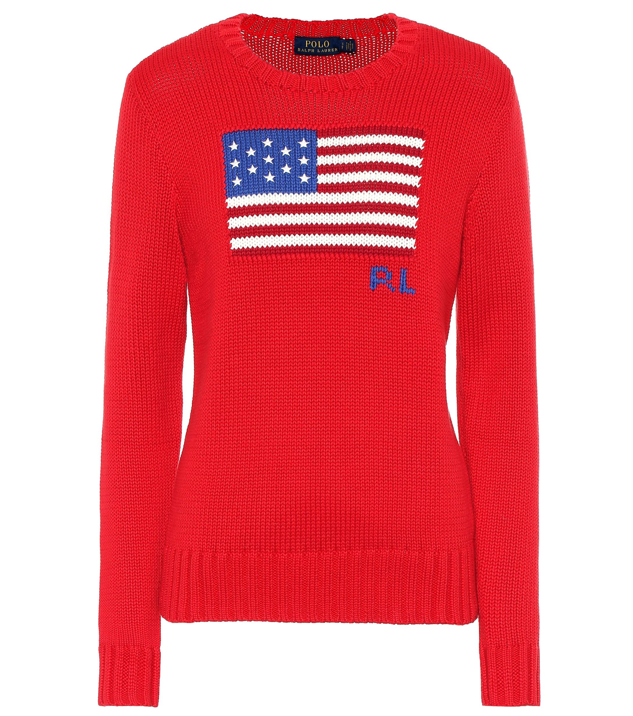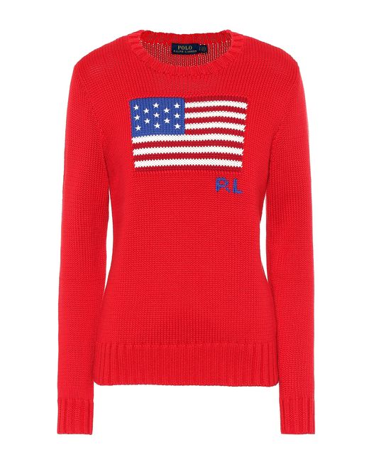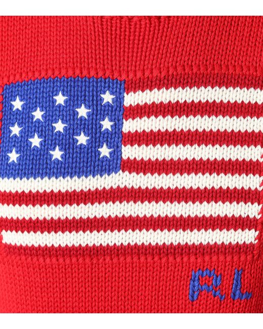 Hissez haut le drapeau américain, étendard de la maison Polo Ralph Lauren, avec ce pull en maille de coton rouge. Coloris : rouge