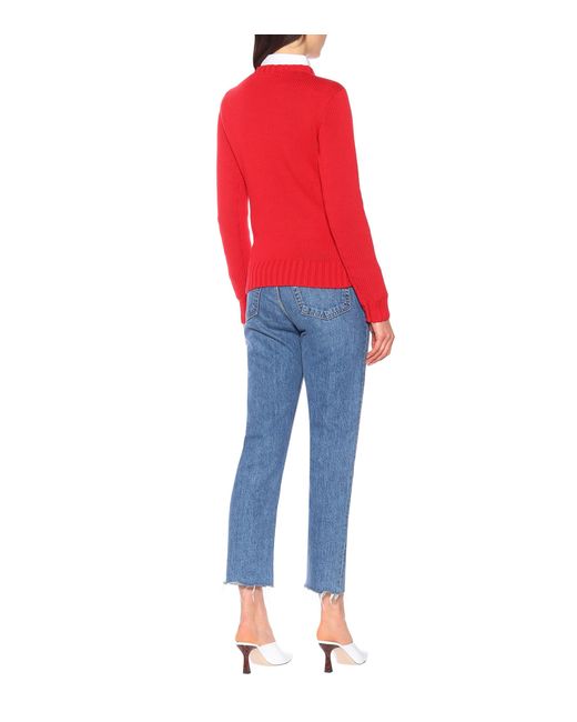 Pull en maille intarsia en coton Polo Ralph Lauren avec encolure ronde, manches longues et ourlet et poignets nervurés. Couleur : rouge.