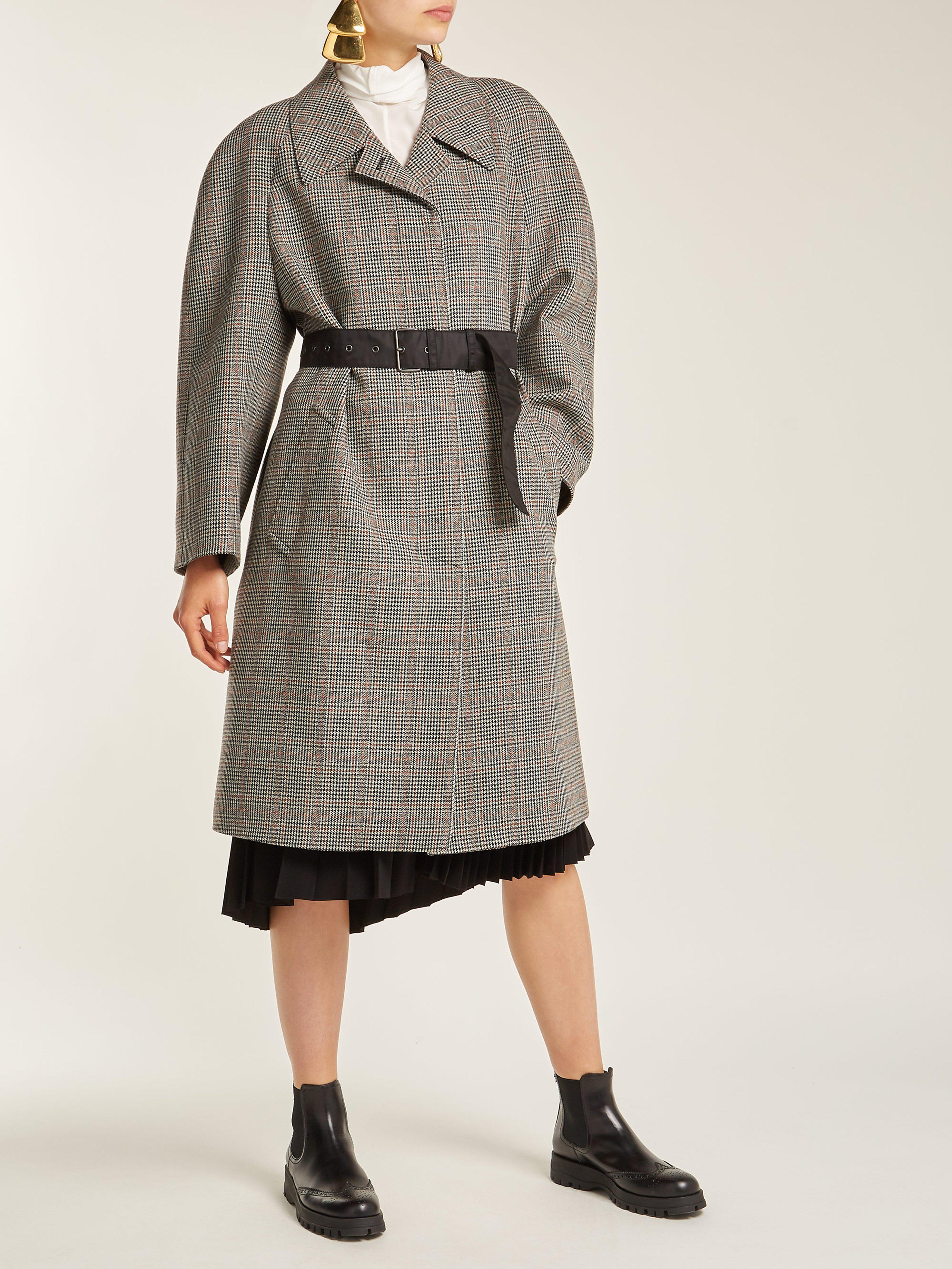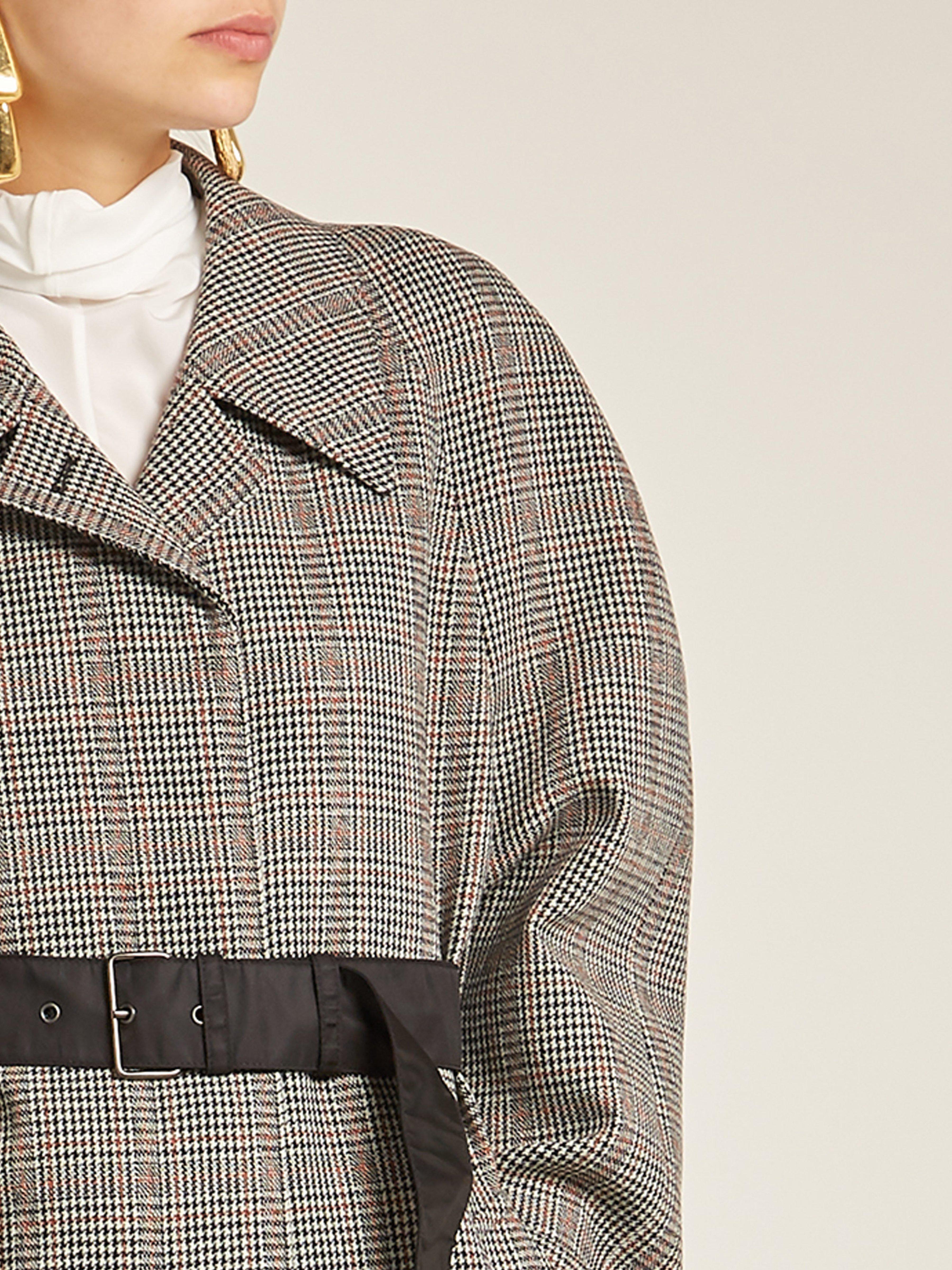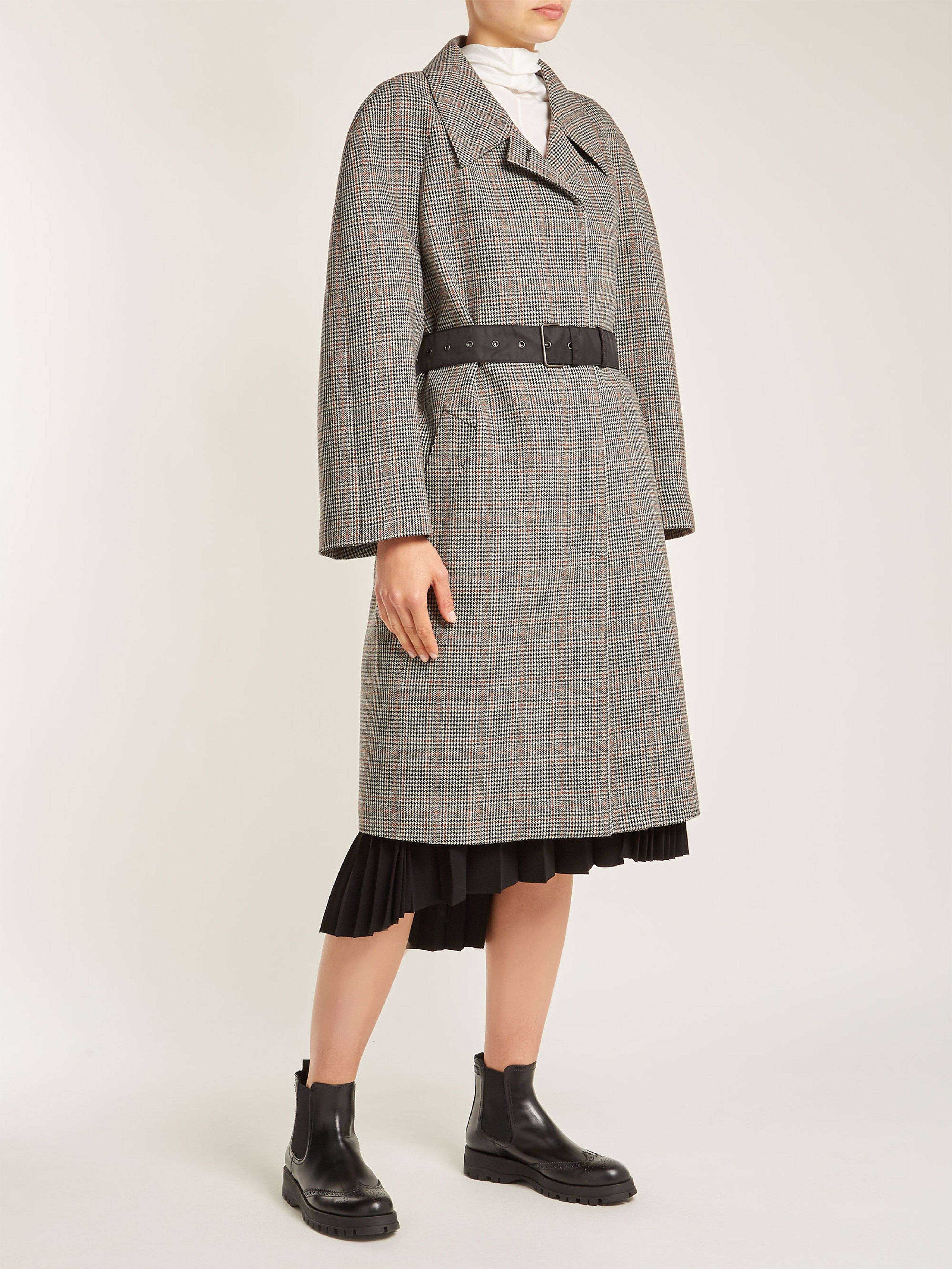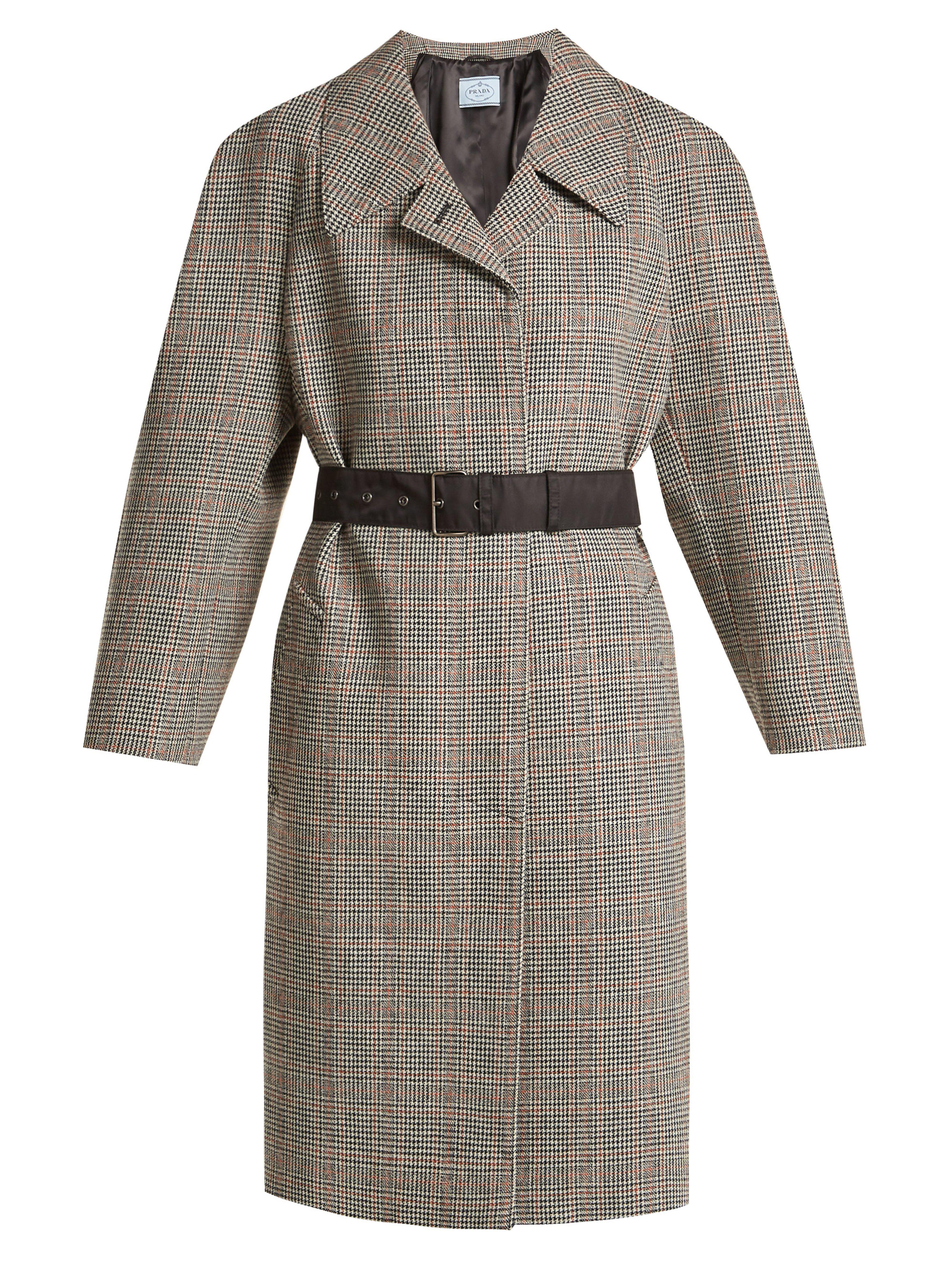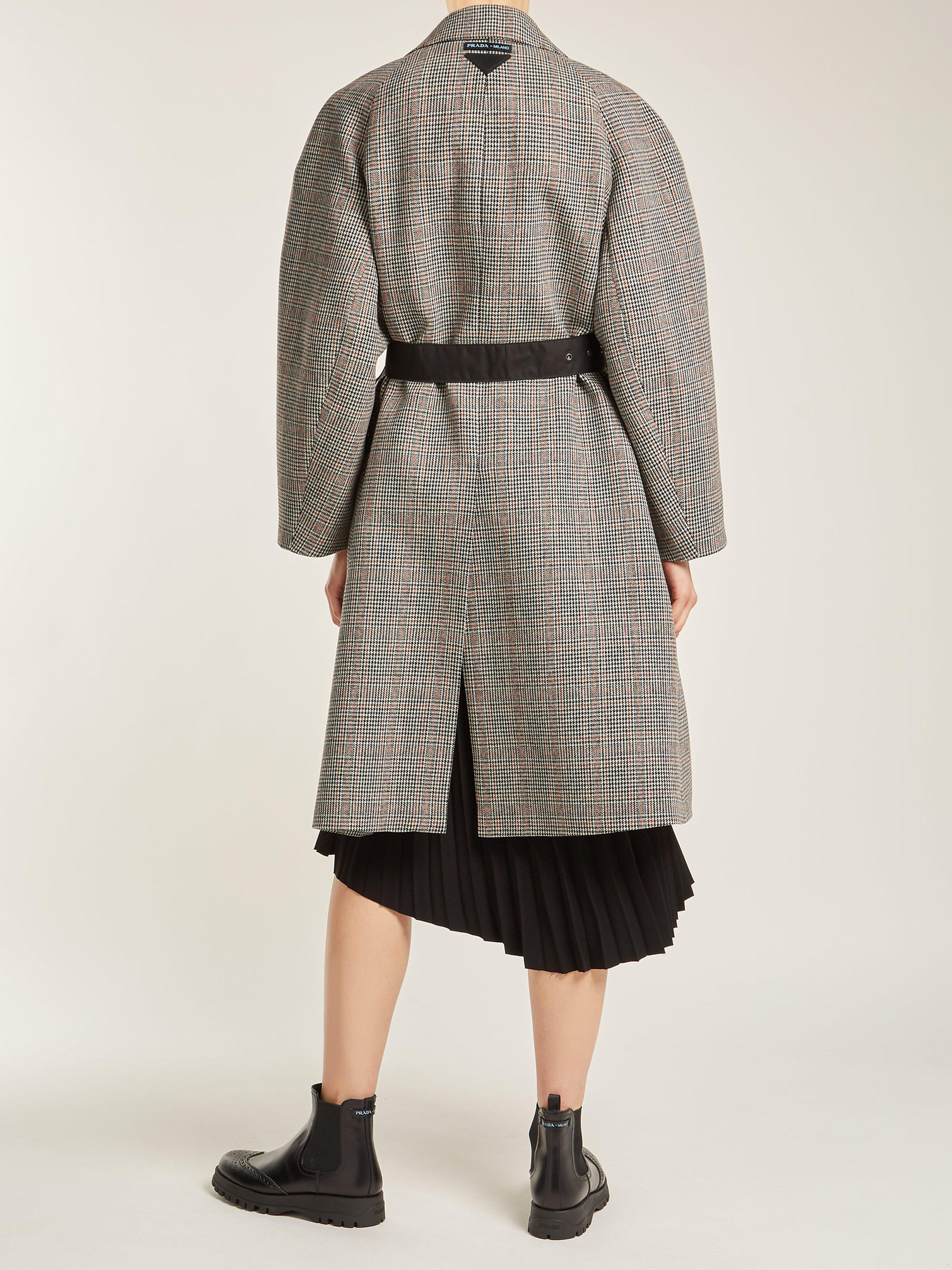 Consulter MATCHESFASHIONConfectionné en Italie en laine mélangée, ce manteau signé Prada présente le motif pied-de-poule gris et marron aperçu pour la première fois lors du défilé automne-hiver 2018. Ce modèle adopte une coupe décontractée légèrement carrée, agrémentée d'épaules arrondies. Il s'accompagne d'une ceinture en nylon signature de la maison. Portez-le avec des bottines pour rester fidèle aux proportions développées par la créatrice lors de la Fashion Week de Milan. Coloris : gris