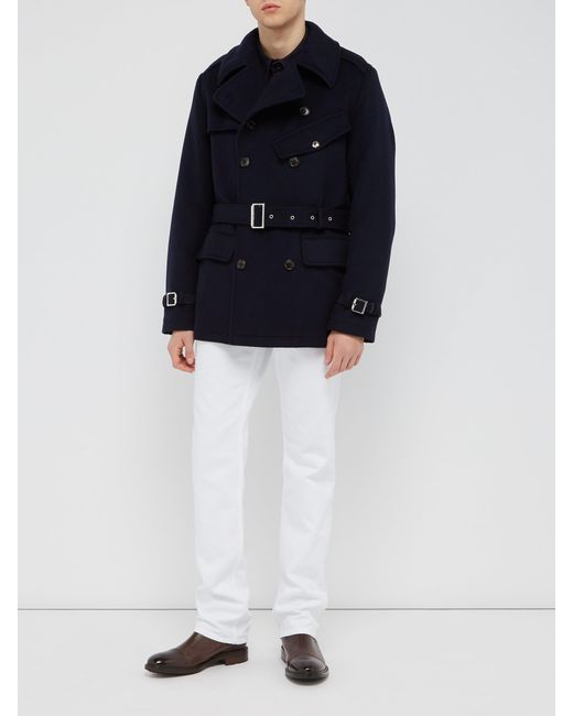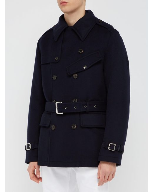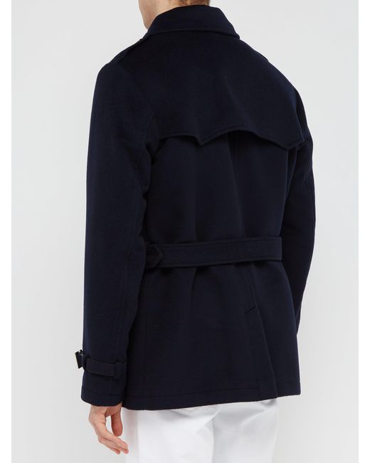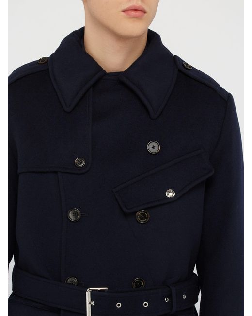 Trench-coat en laine melton à double boutonnage homme de coloris bleu