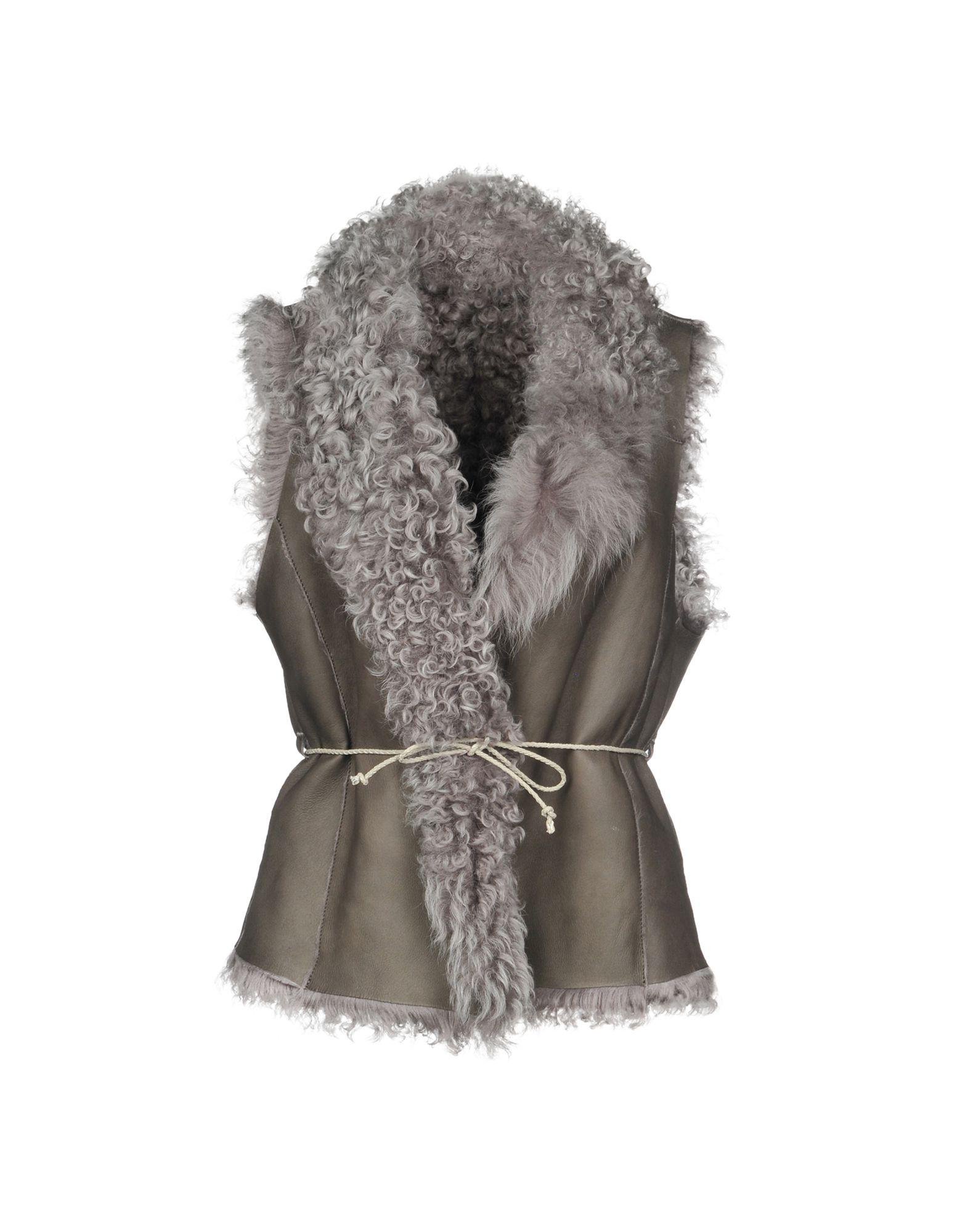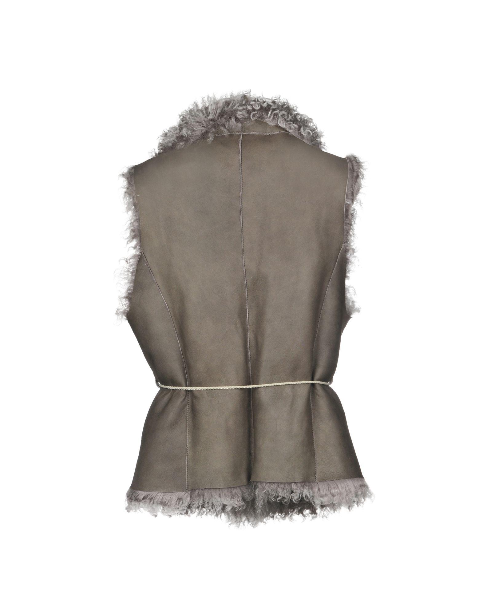 Cuir, sans applications, couleur unie de base, col avec revers, veste droite, fermeture à lacets, sans poche, sans manches, intérieur sans doublure, contient des parties non textiles d'origine animale, vestes et manteau, tournure réduite. 100% Mouton. Coloris : gris