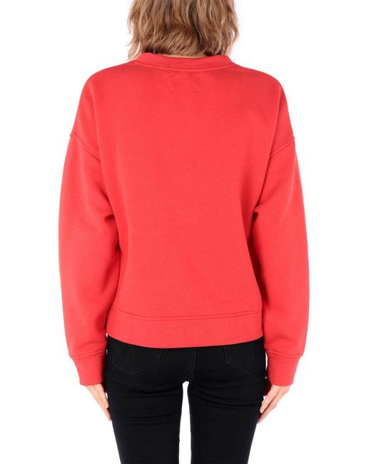 Sans applications, couleur unie de base, col rond, manches longues, sans poche, doublure en molleton épais. 50% Coton, 50% Polyester. Coloris : rouge