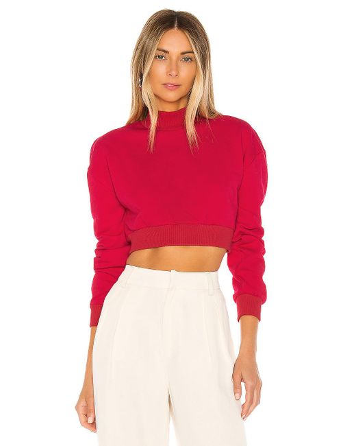 Superdown SWEAT CROPPED MEGHAN in Red. 100% coton. Lavage la main l'eau froide. Tissu molleton. Import. Coloris : rouge