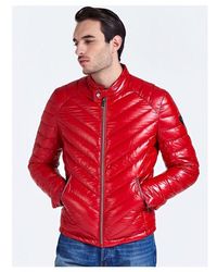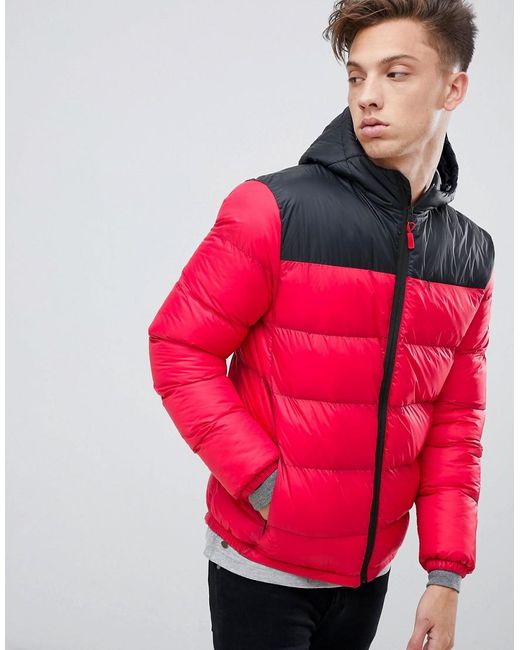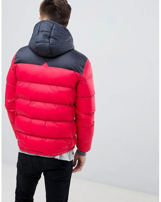 Doudoune à capuche avec empiècements homme de coloris rouge