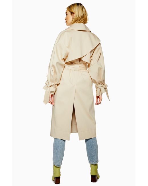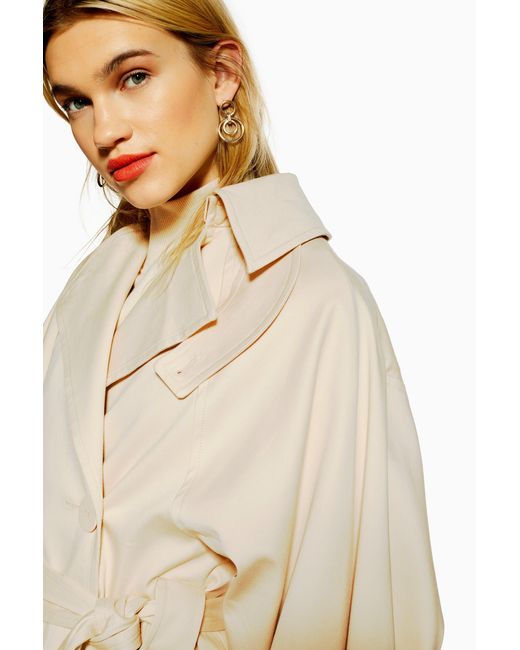 Trench crème boutonné. 68 % coton, 30 % modal, 2 % élasthanne. Nettoyage à sec uniquement. Coloris : neutre