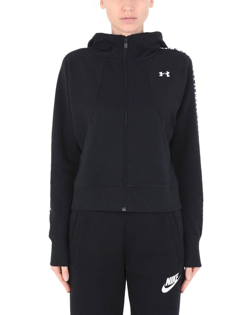 Imprimé, logo, uni, col à capuche, manches longues, zip, multipoches, doublure en molleton épais, indoor training. 80% Coton, 20% Polyester. Coloris : noir