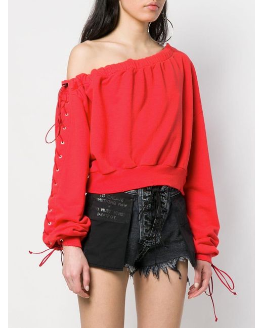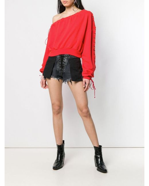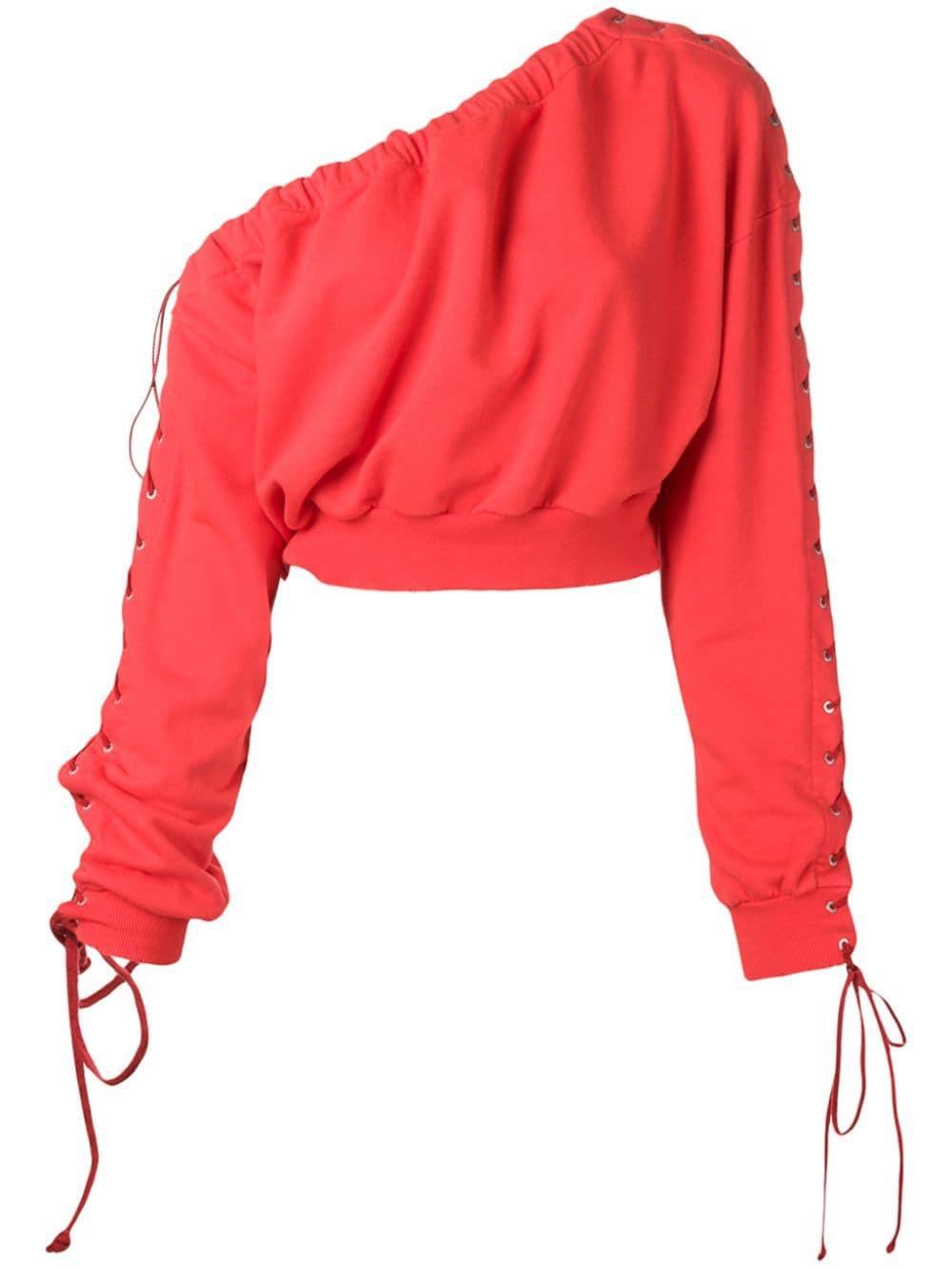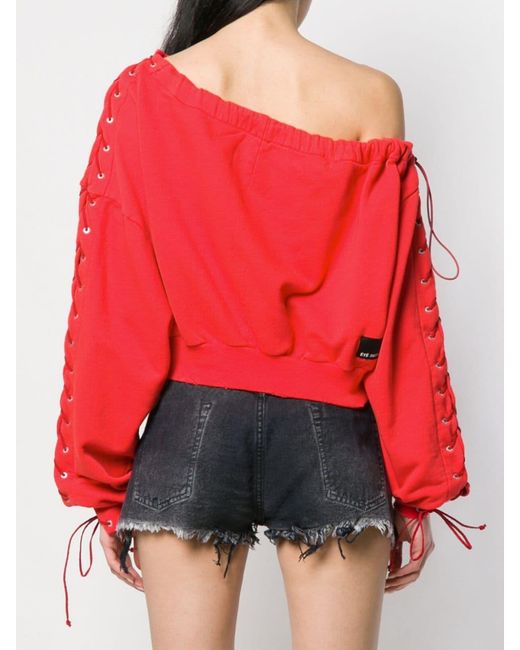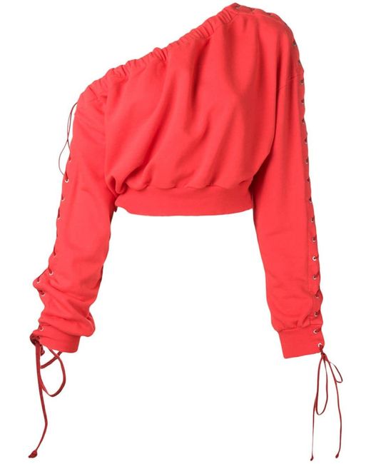 Sweat à laçage en coton Unravel Project avec détails de fronces, aspect souple, ourlet et poignets nervurés, manches longues et poignets noués. Couleur : rouge. Coloris : rouge