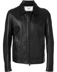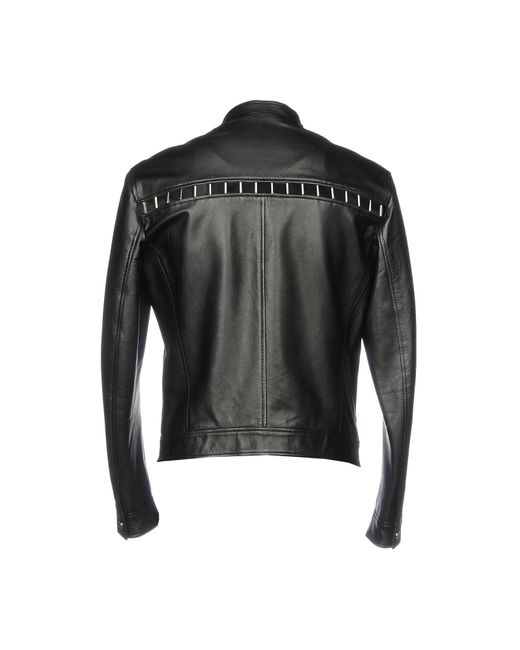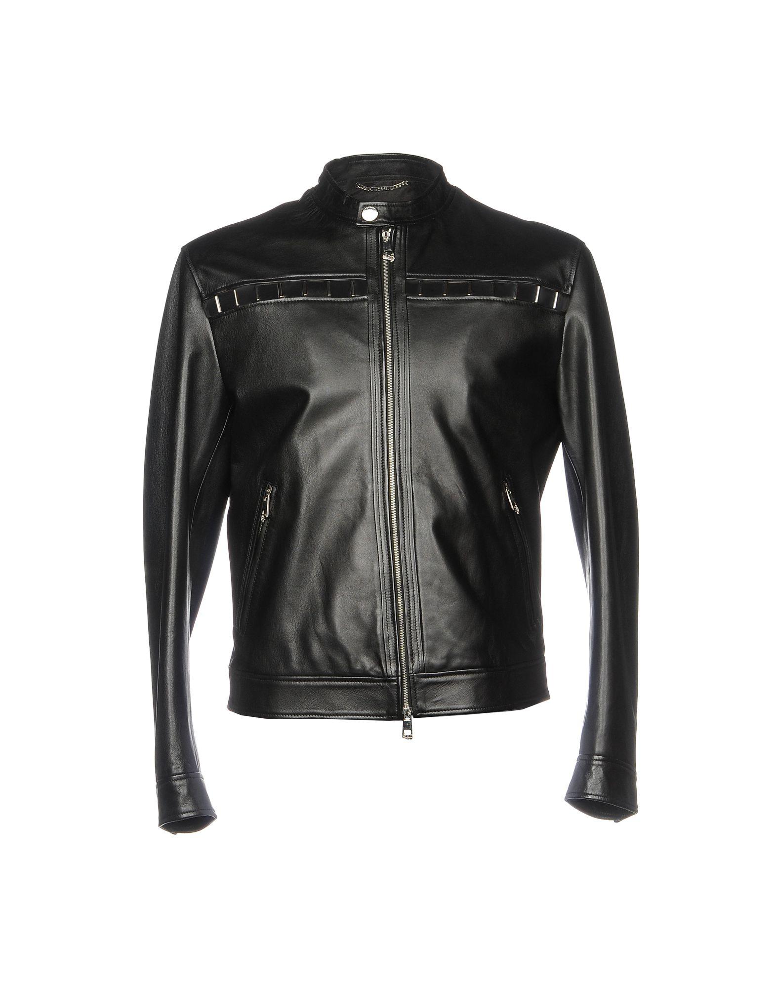 Cuir, logo, inserts en métal, uni, veste droite, zip, col mao, multipoches, manches longues, intérieur doublure, contient des parties non textiles d'origine animale, perfecto. 100% Cuir d'agneau. Coloris : noir