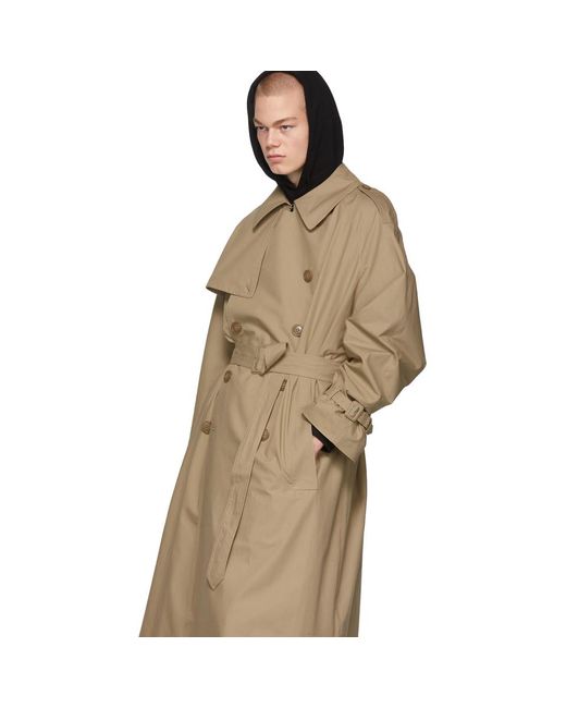 Trench a manches longues en popeline de coton beige. Col classique. Double boutonnage a lavant. Bavolet a la poitrine. Poches passepoilees, passants de ceinture et ceinture amovible et reglable a boucle a ardillon a la taille. Pattes ceinturees a lepaule. Manches raglan. Sangles amovibles et reglables a boucle a ardillon aux revers. Fente centrale a lourlet arriere. Entierement double. Couleur du fournisseur: Beige. Coloris : neutre